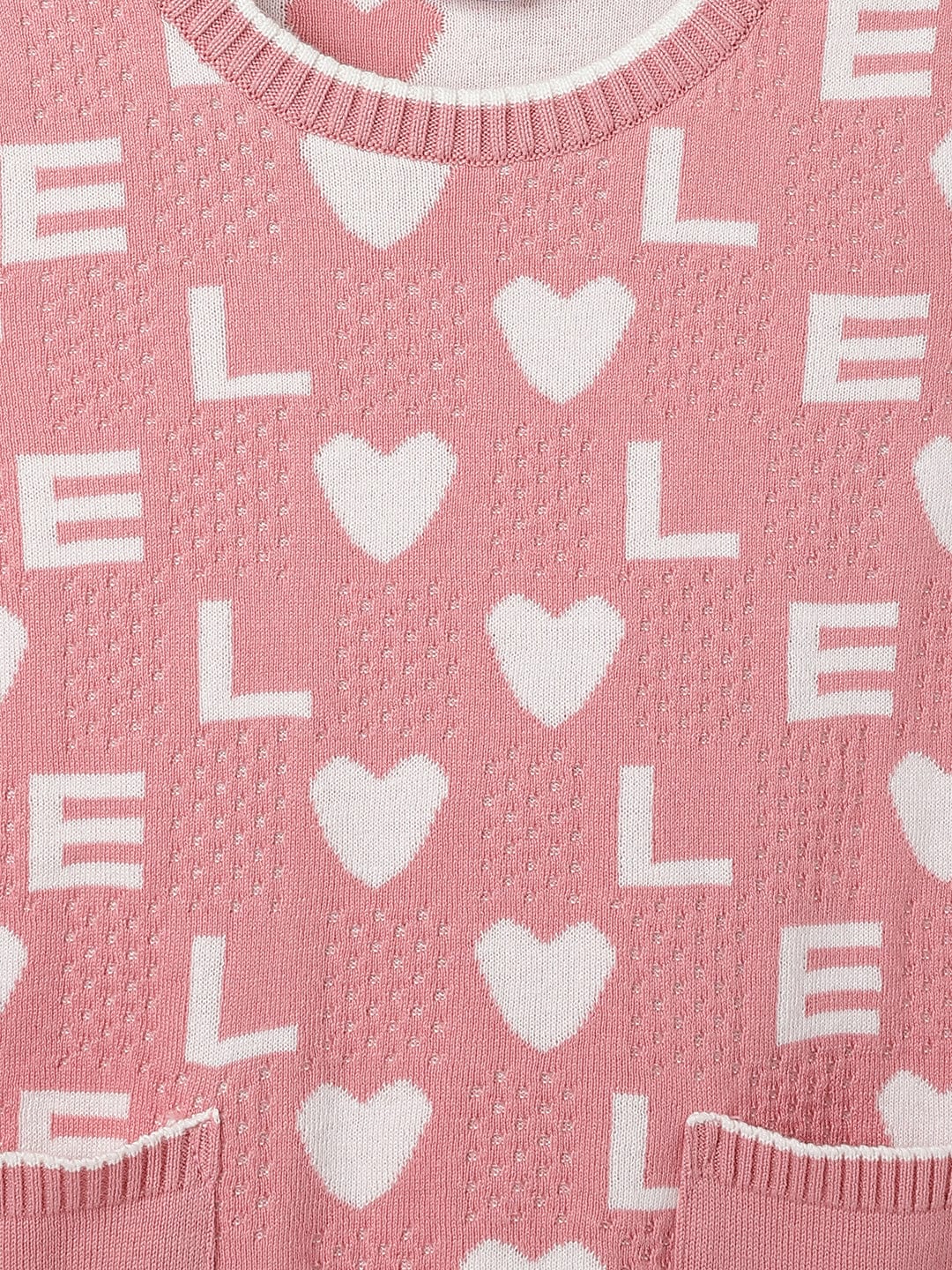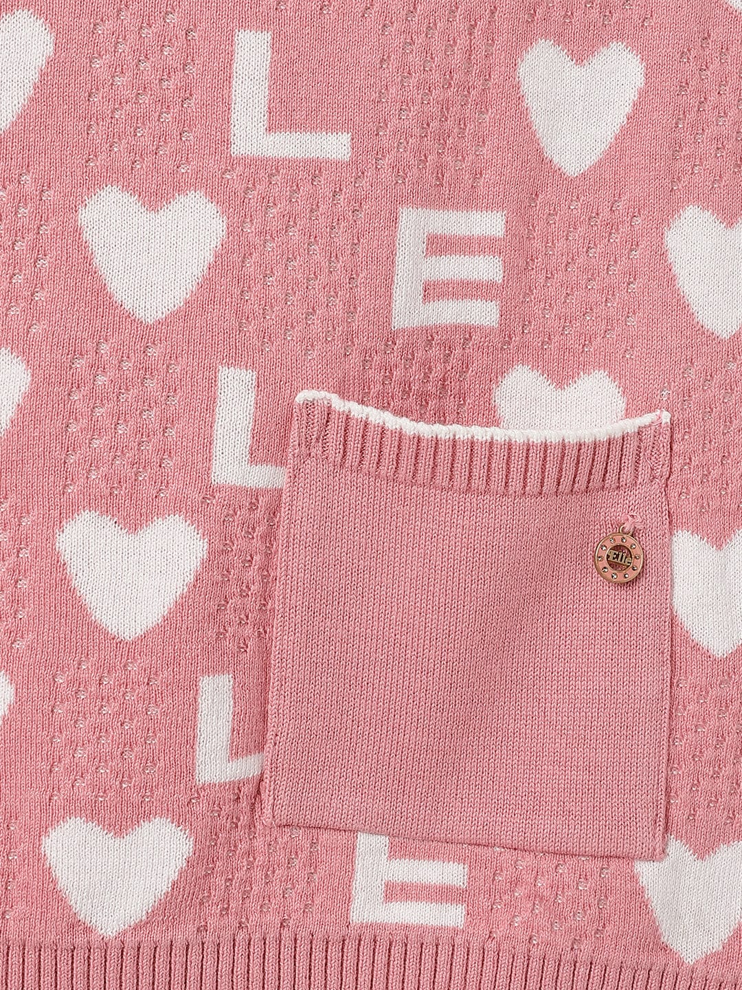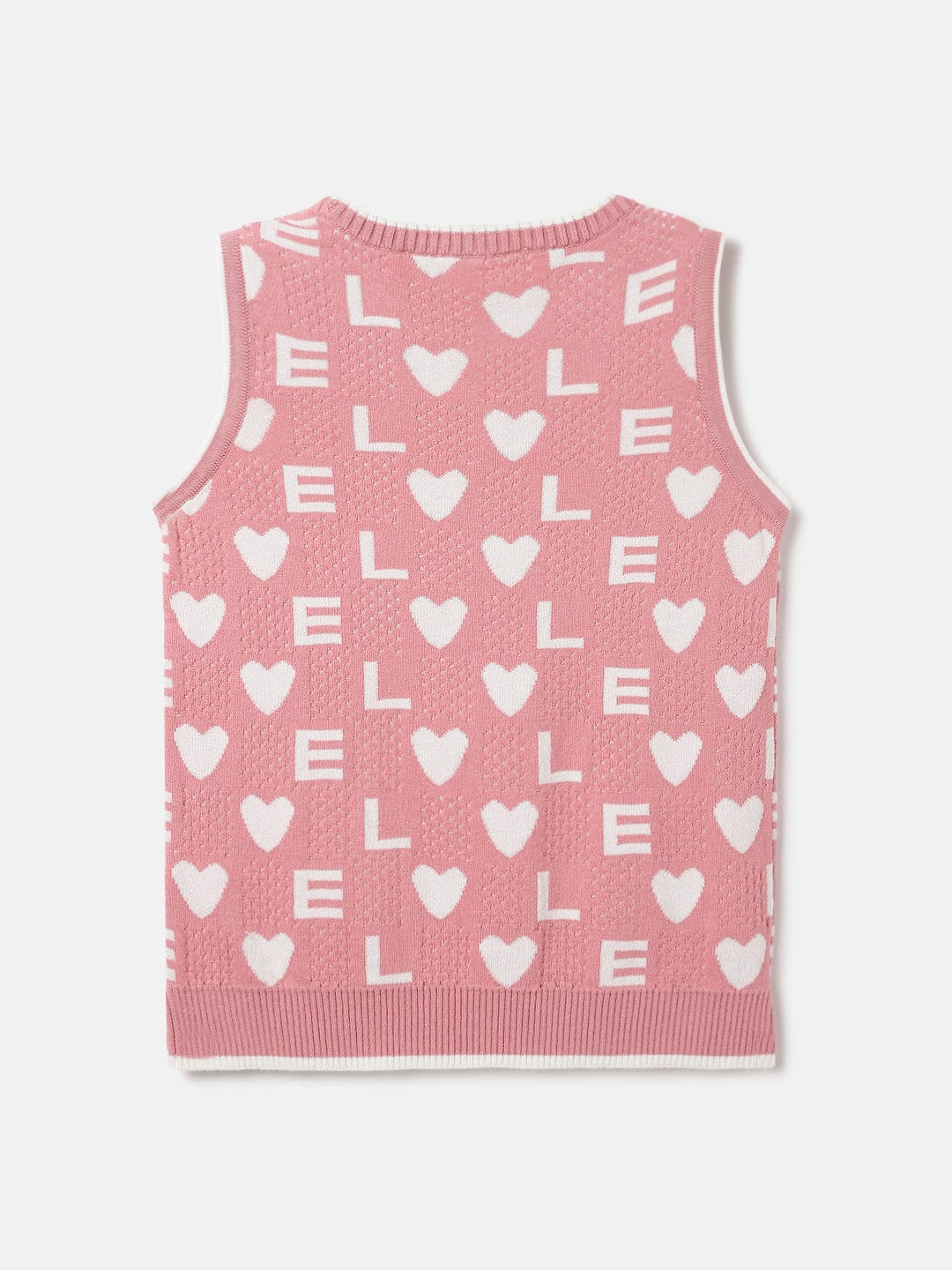 This sleeveless pink t-shirt is perfect for girls who love a relaxed fit and a touch of style. Made from pure cotton it features a heart pattern texture and a round neck. The flat knit structured t-shirt is stretchable and has branding for a touch of personality. It's easy to pull on and off making it a great choice for everyday wear.