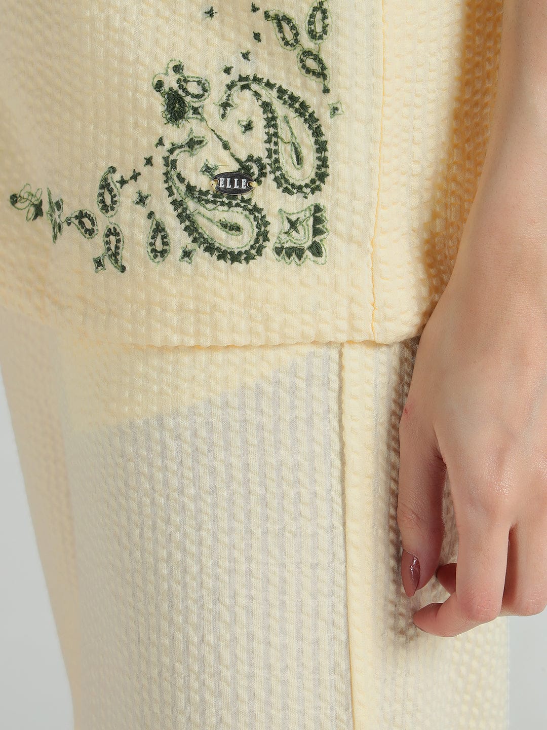 Elle Women Cream Embroidered V Neck Top