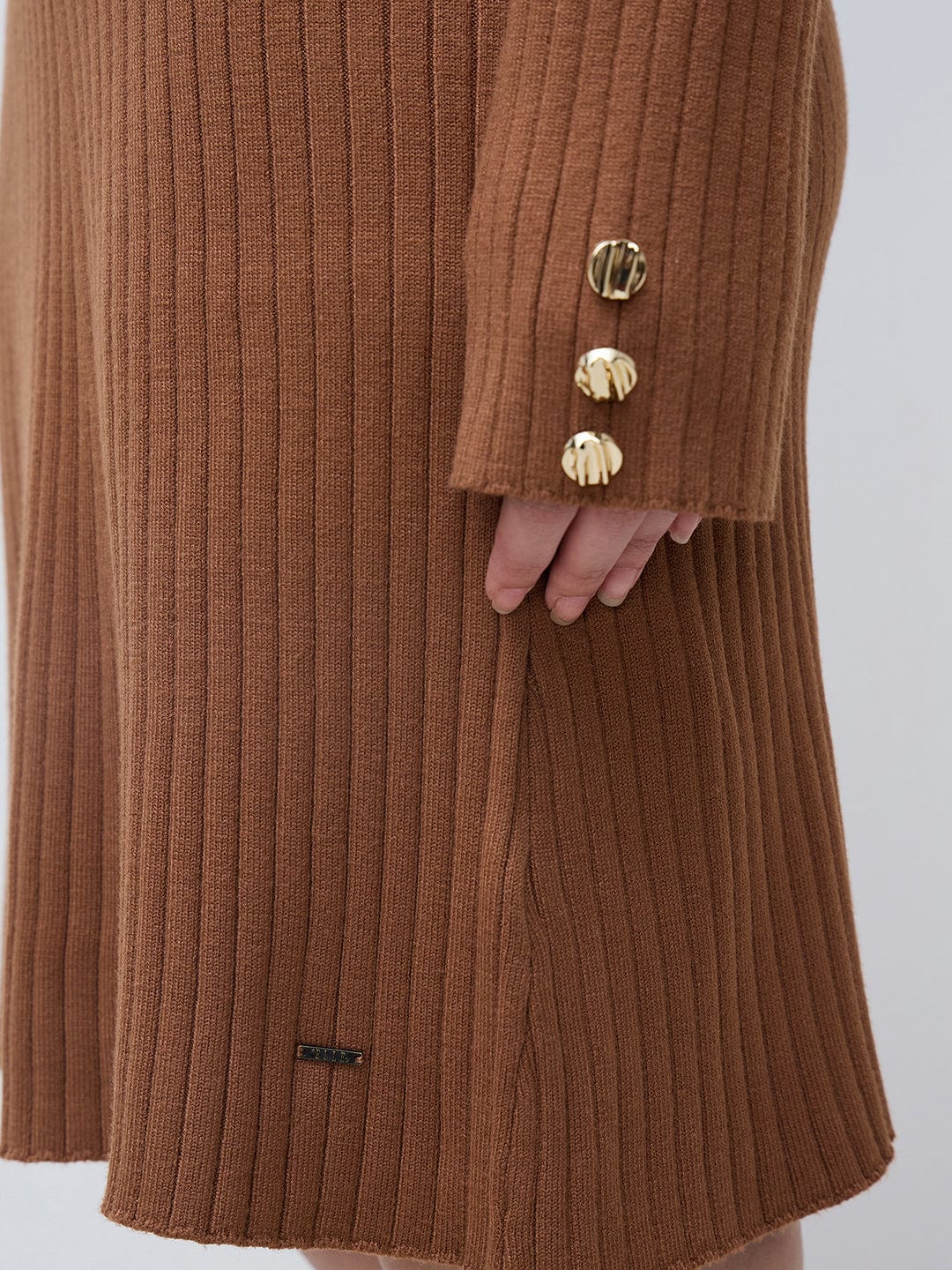 Elle Women Brown Solid Round Neck Fit & Flare Dress