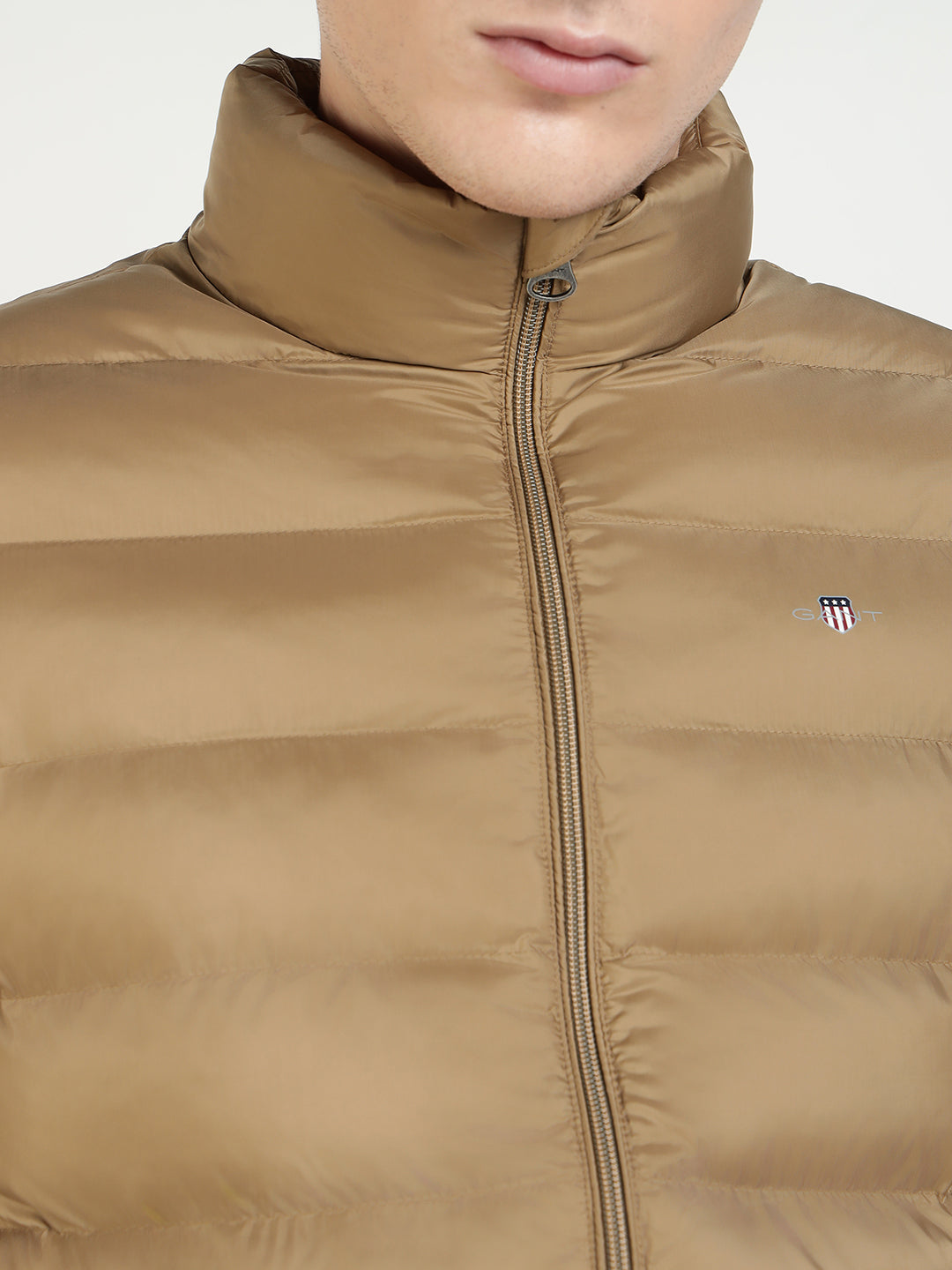 Elevate your winter style with the GANT Men's Khaki Polyester Quilted Puffer Jacket. Crafted with high-quality woven polyester. This jacket features a cozy high neck and long sleeves to keep you warm and comfortable in cold weather. The regular fit and zip closure ensure a perfect fit, while the quilted design adds a touch of sophistication to your look. Whether you are hitting the slopes or simply running errands around town. This stylish jacket will keep you looking sharp and feeling cozy all season long.