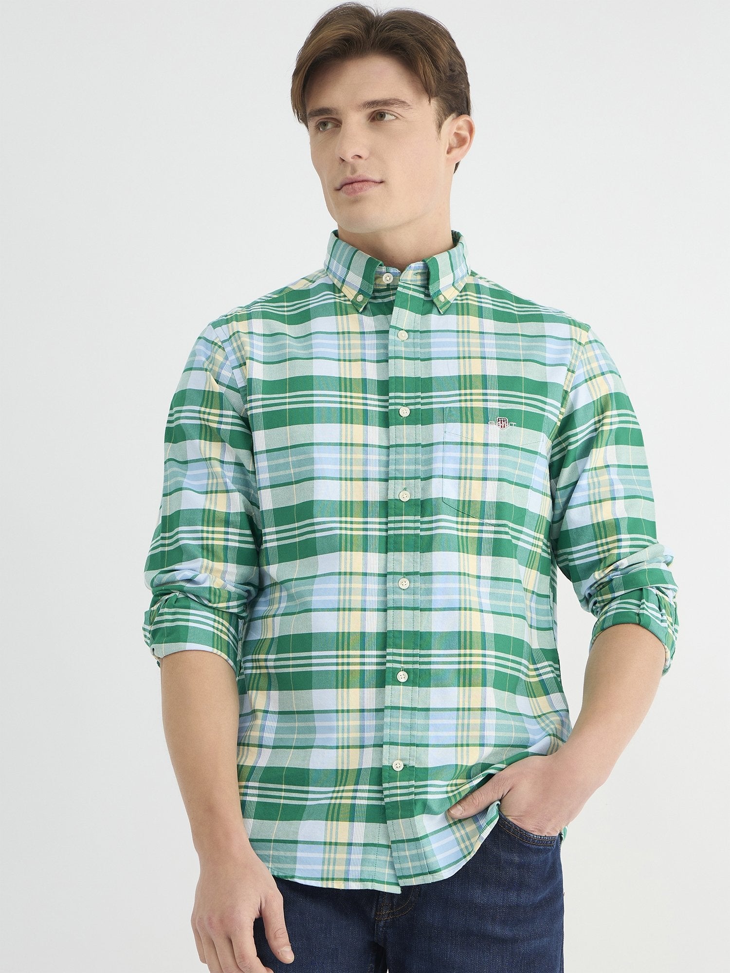 Embrace timeless style with our classic green plaid shirts. Crafted from pure cotton, these regular-fit shirts offer comfort and breathability. The full sleeves and button-down collar add a touch of sophistication, while the button closure ensures a secure fit. Perfect for any occasion, these shirts are a wardrobe essential.