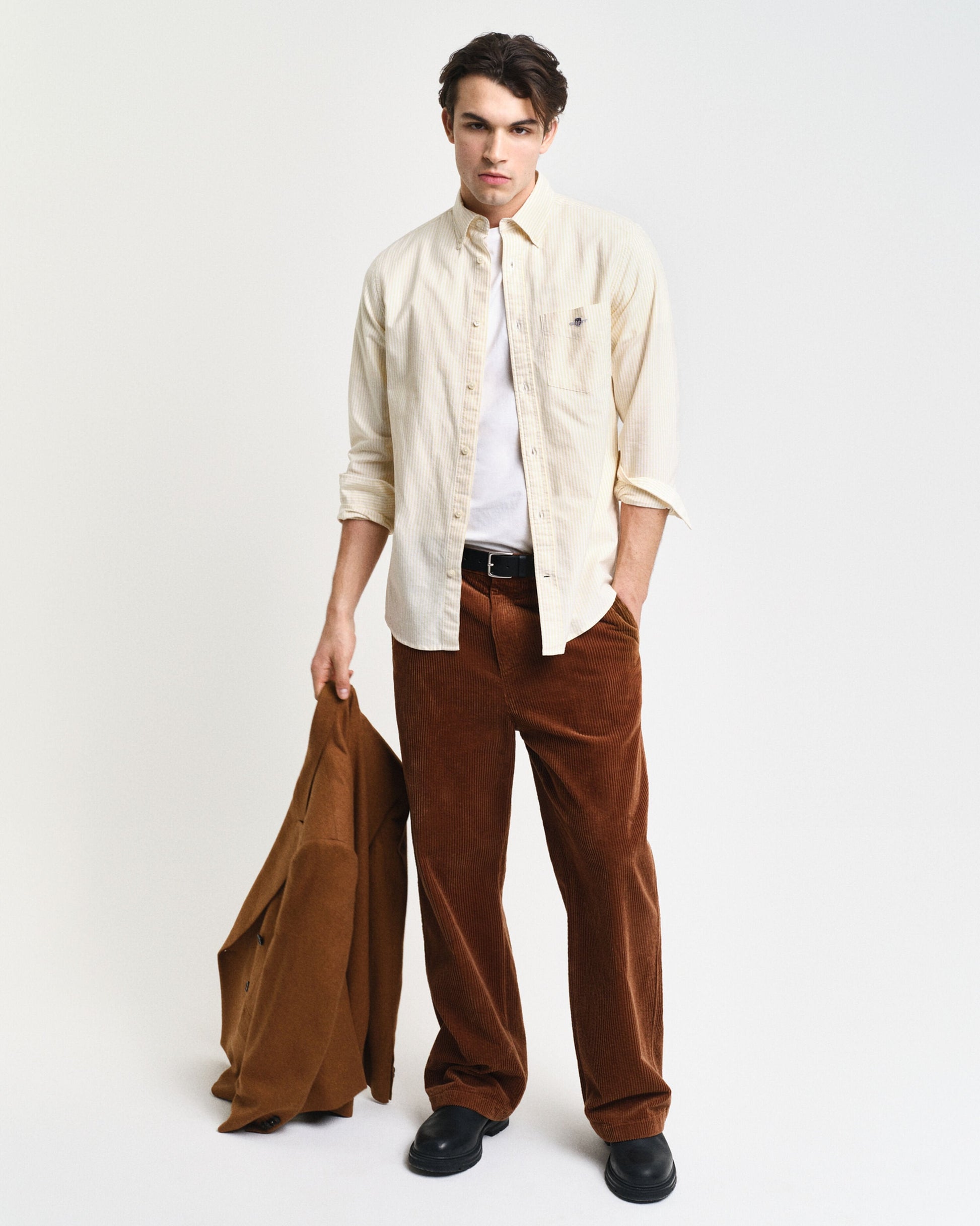 Gant Men Yellow Striped Button-down Collar Full Sleeves Shirt