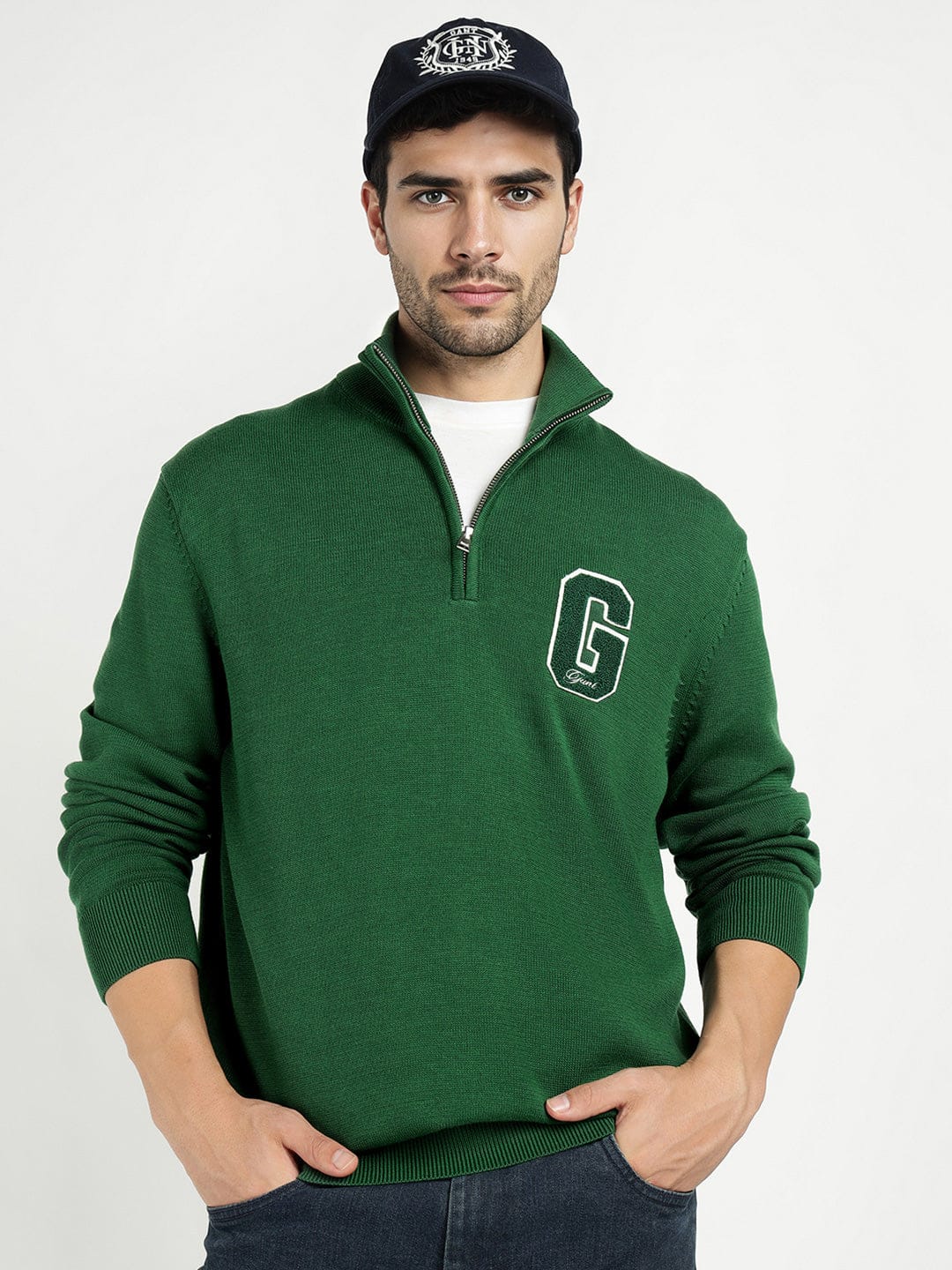 This GANT Men Green Cotton knitted logo Mock neck Sweater crafted from high-quality cotton. This pullover features long sleeves and a regular fit for ultimate comfort. The mock neck adds a touch of sophistication, while the iconic GANT logo showcases your timeless taste. Perfect for layering or wearing on its own. This sweater is versatile and stylish, making it a must-have addition to any wardrobe. Stay warm and stylish in this classic piece that effortlessly transitions from work to weekend.