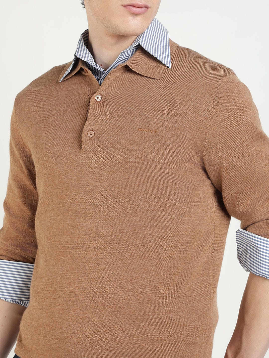 Gant Men Regular Brown Solid Pure Merinowool Sweater