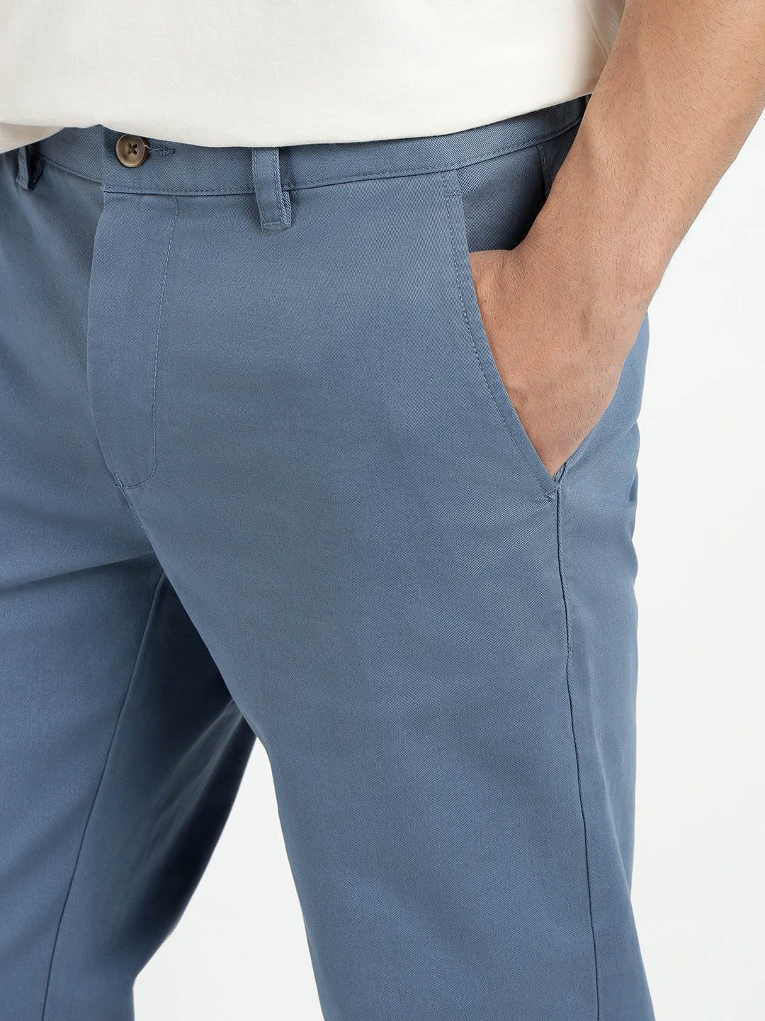 Elevate your everyday style with the GANT Men Steel Blue Cotton woven mid rise solid button slim fit Chinos Trouser. Crafted with quality cotton fabric.This chinos offer a comfortable and stylish slim fit that flatters every body type. The classic steel blue color adds a sophisticated touch to any outfit, making it a versatile wardrobe staple. With a mid-rise waist and button closure.This trousers are perfect for both casual and formal occasions. Upgrade your look with these sleek and modern chinos that effortlessly blend comfort and style.