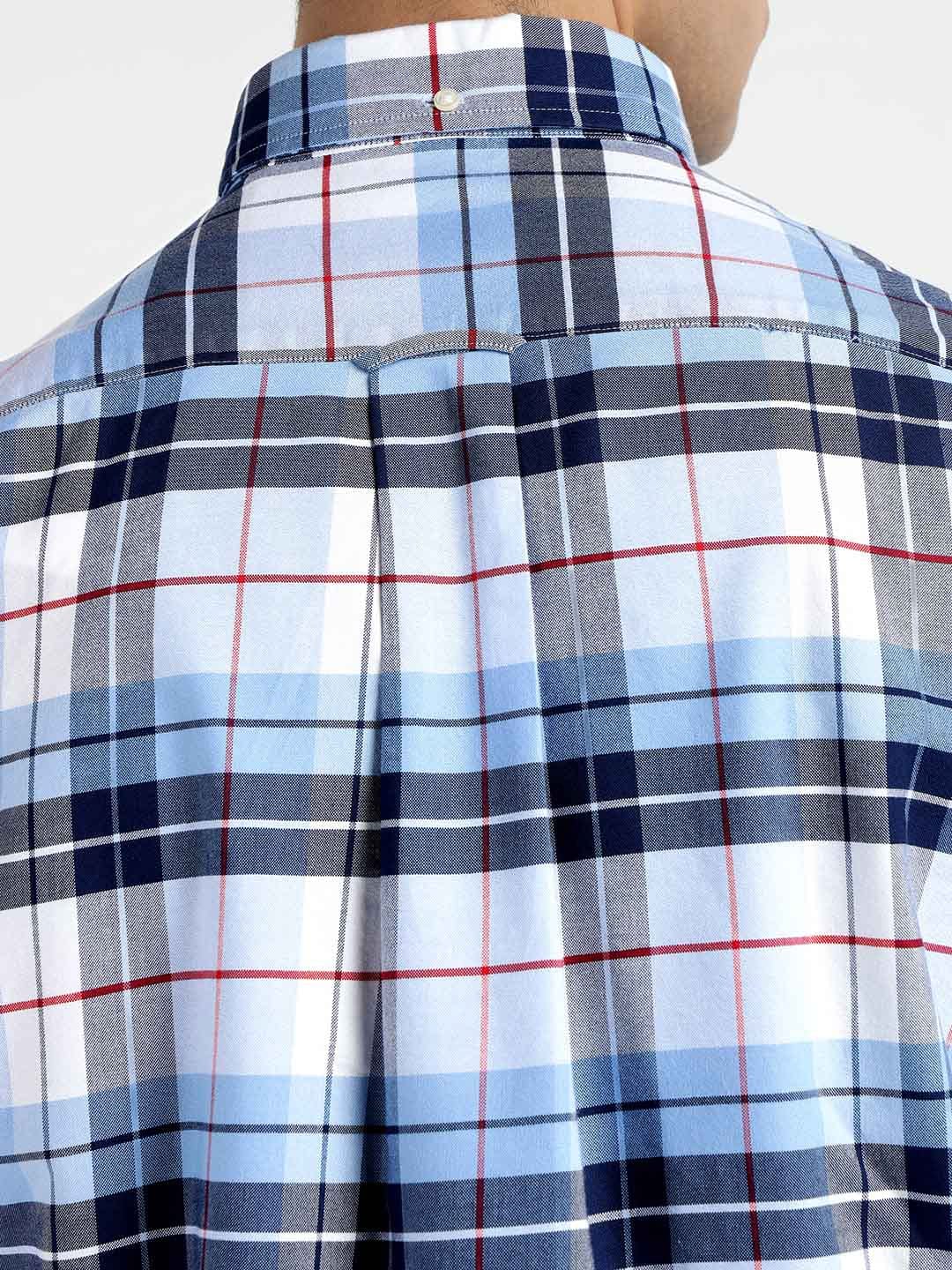 Elevate your everyday style with GANT Men Multicolour Cotton woven checked button down collar long sleeves shirt. Made with premium cotton fabric.This shirt offers a comfortable fit and a timeless checkered pattern that adds a classic touch to any outfit. With a button-down collar and long sleeves.This versatile shirt can effortlessly take you from work to play. The regular fit ensures a flattering silhouette, making it a wardrobe essential for the modern man who values both style and comfort. Upgrade your wardrobe with this versatile and stylish shirt today.