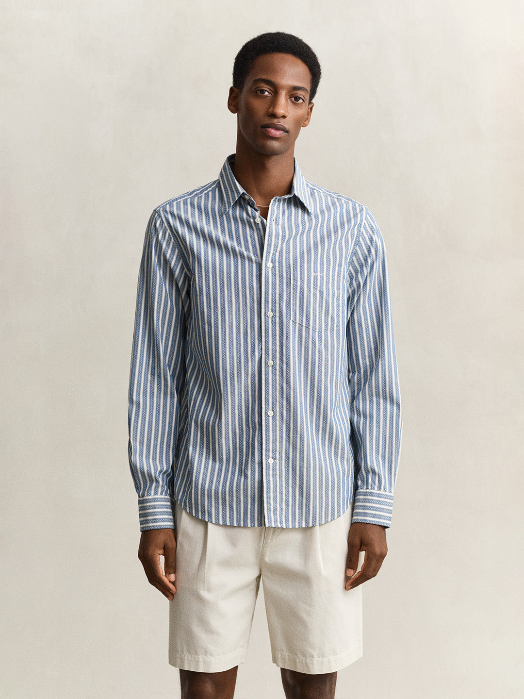 GANT Men Blue Dobby Striped Cotton Shirt