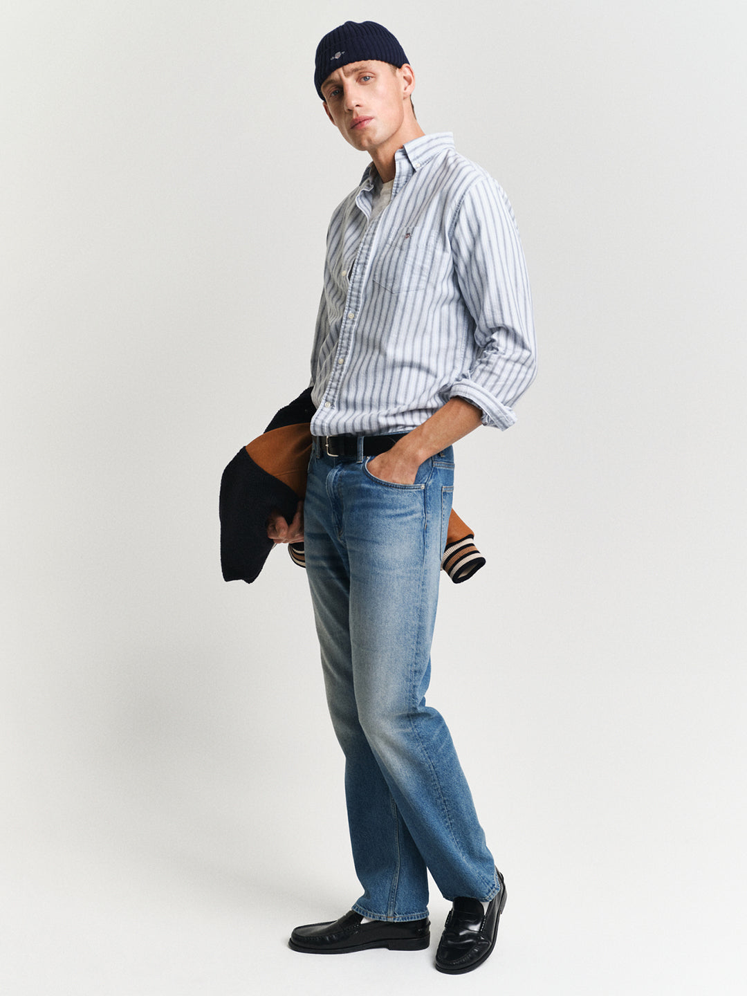 Gant Men Blue Striped Button-Down Collar Full Sleeves Shirt