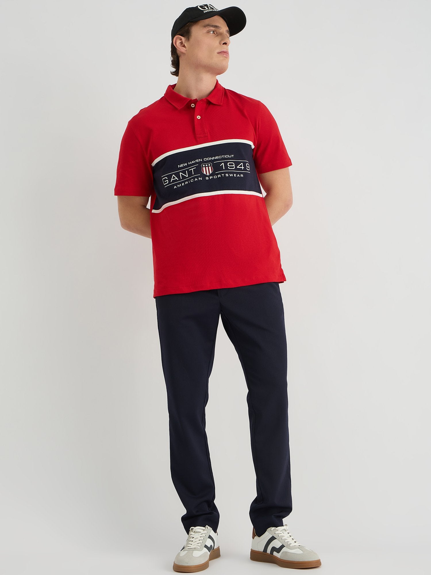 Bold and classic, this red polo is a statement piece. Crafted from pure cotton, it features a colorblock design, short sleeves, and a button closure. The regular fit ensures comfort and style.
