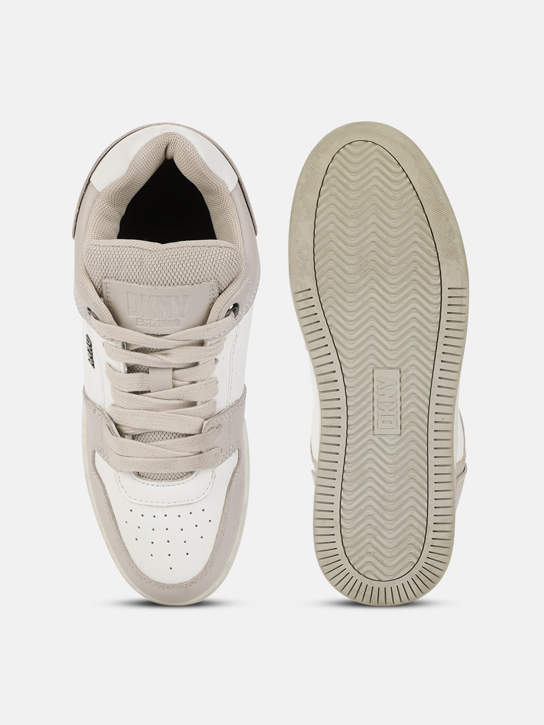 Step into style with DKNY Women's White Color-Blocked Lace-Up Sneakers. These mid-top sneakers feature a round toe and a sleek color-blocked design, offering both comfort and a modern look. Perfect for casual outings or adding a sporty touch to your wardrobe, these lace-up sneakers ensure a snug fit while keeping you fashion-forward.