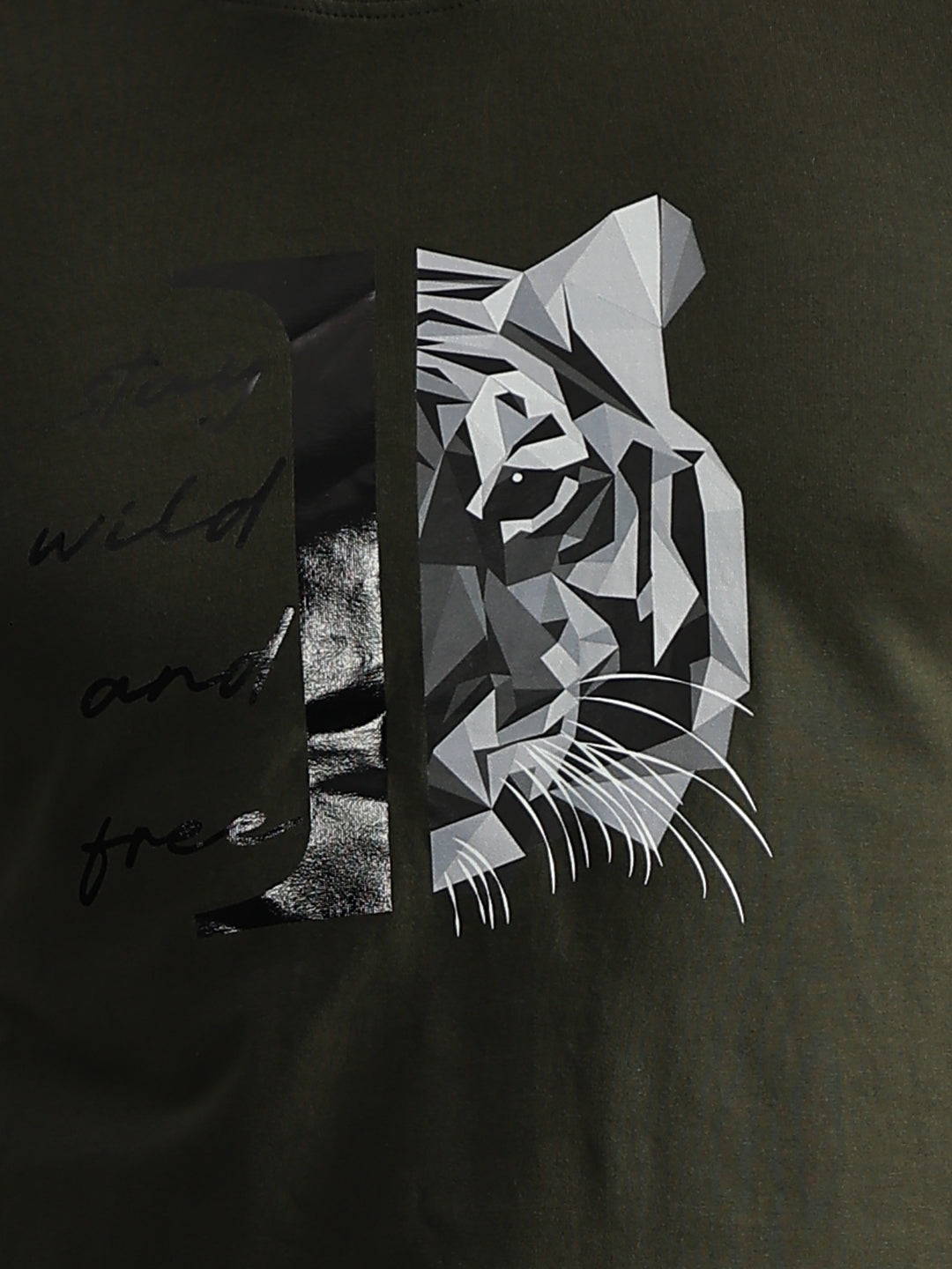 Effortless style meets comfort in this olive green tee. The printed pattern adds a touch of personality, while the regular fit and soft cotton ensure all-day wear. Short sleeves, a round neck, and pull-on closure make it a breezy choice for any occasion.