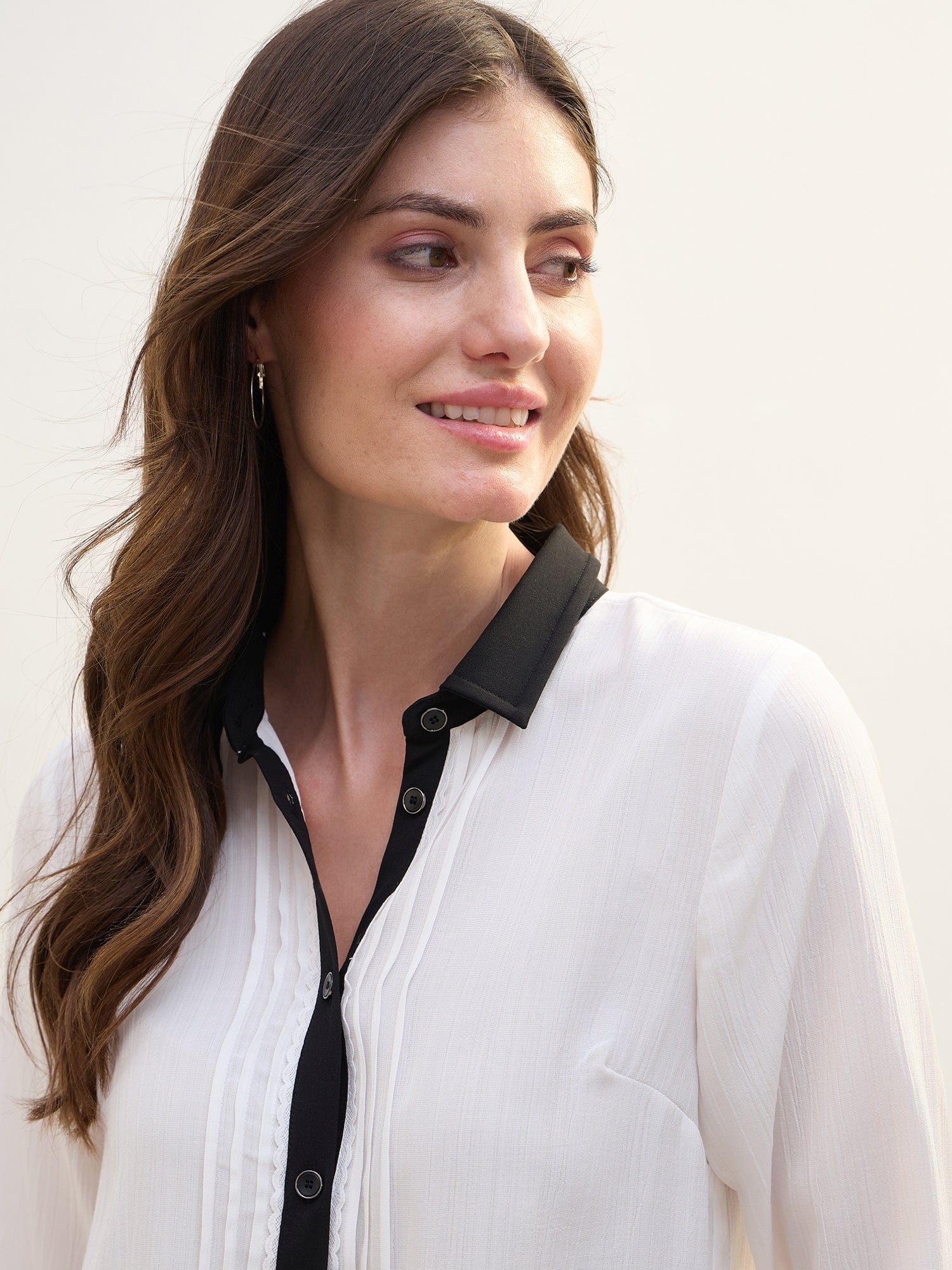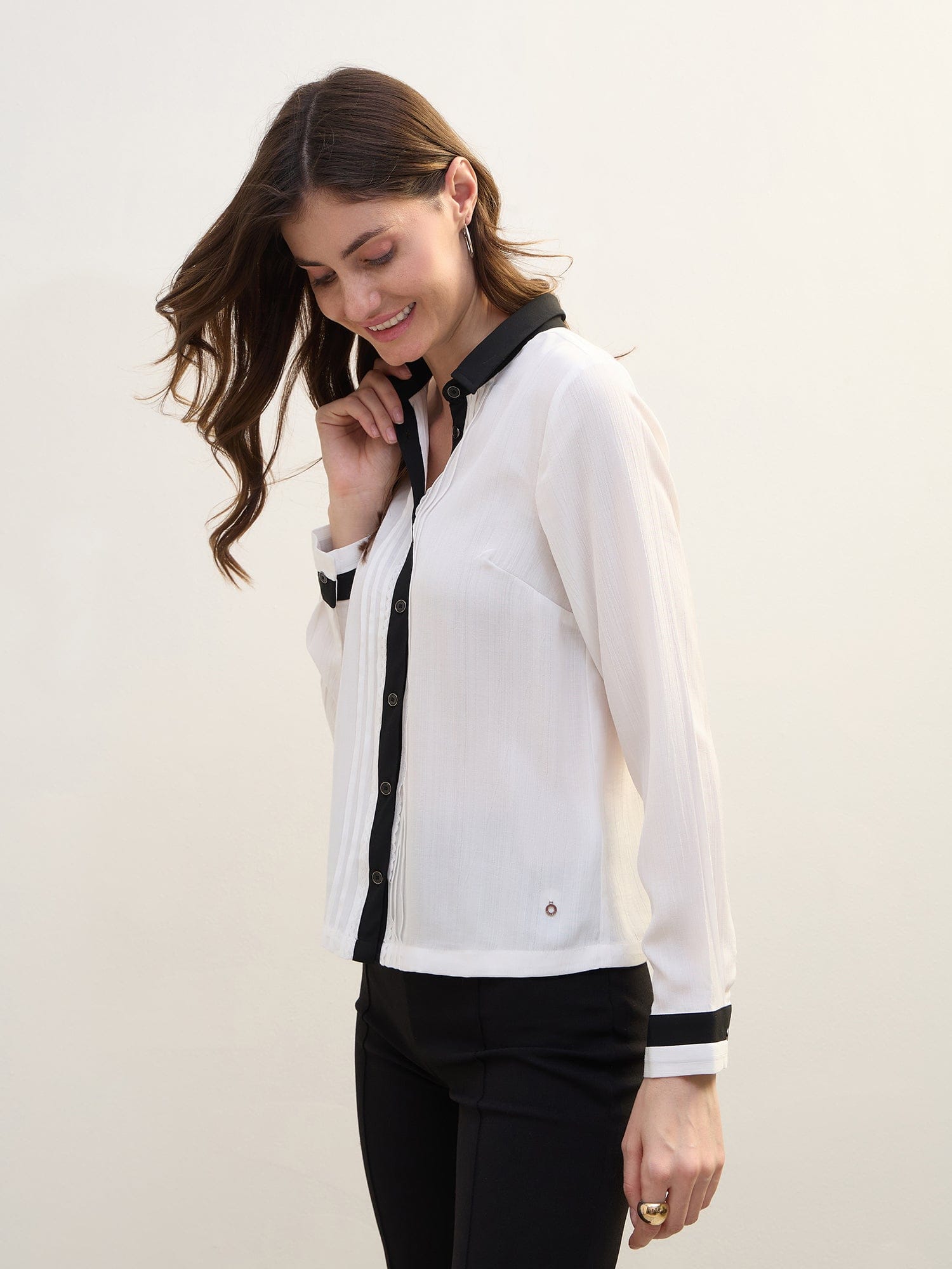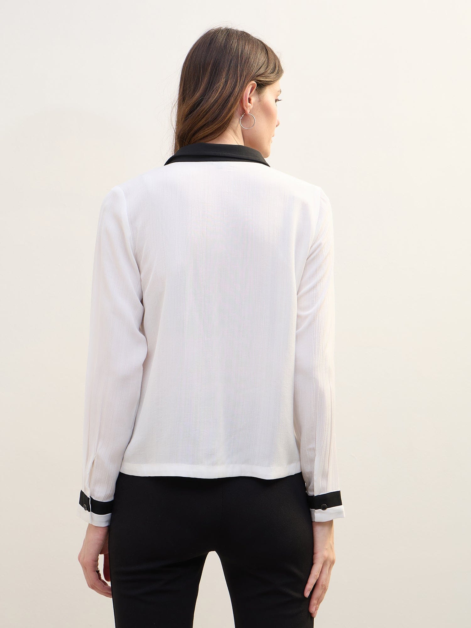Women White Solid Collar Shirt