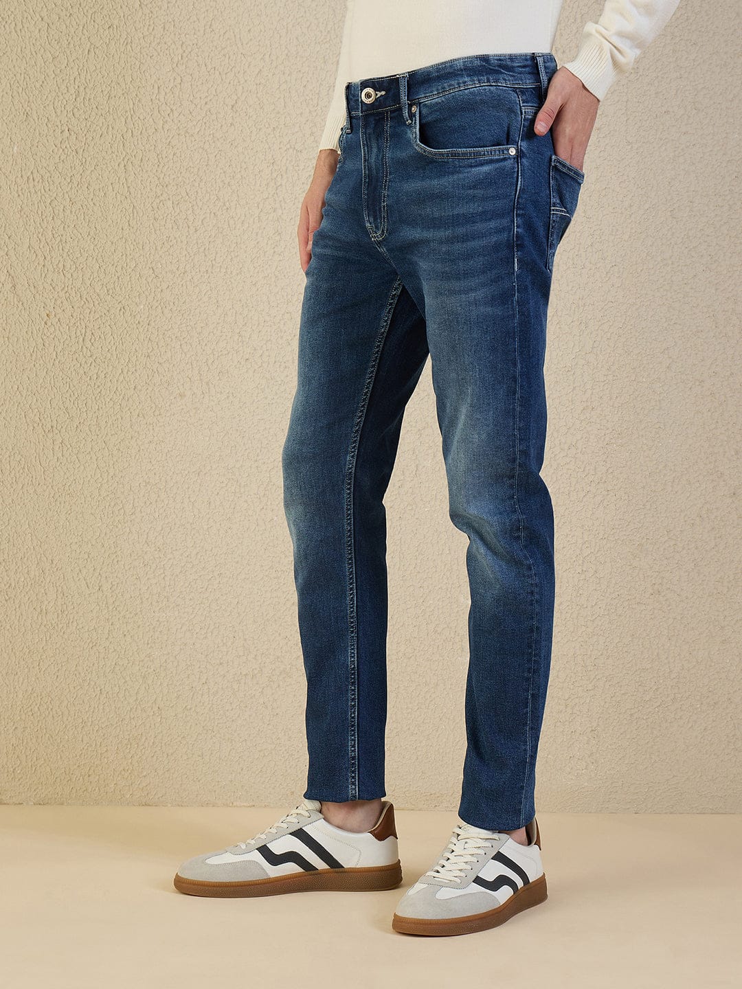 Elevate your style with our ICONIC Men Blue Slim Fit Jeans. Crafted with premium denim, these slim fit jeans offer a modern yet timeless look that effortlessly flatters your figure. Whether you are heading to the office or out for a night on the town, these jeans provide the perfect balance of comfort and style. With a versatile blue wash, these jeans are easy to dress up or down, making them a wardrobe staple for any man. Upgrade your denim collection with our ICONIC Men Blue Slim Fit Jeans and experience the perfect blend of fashion and functionality.