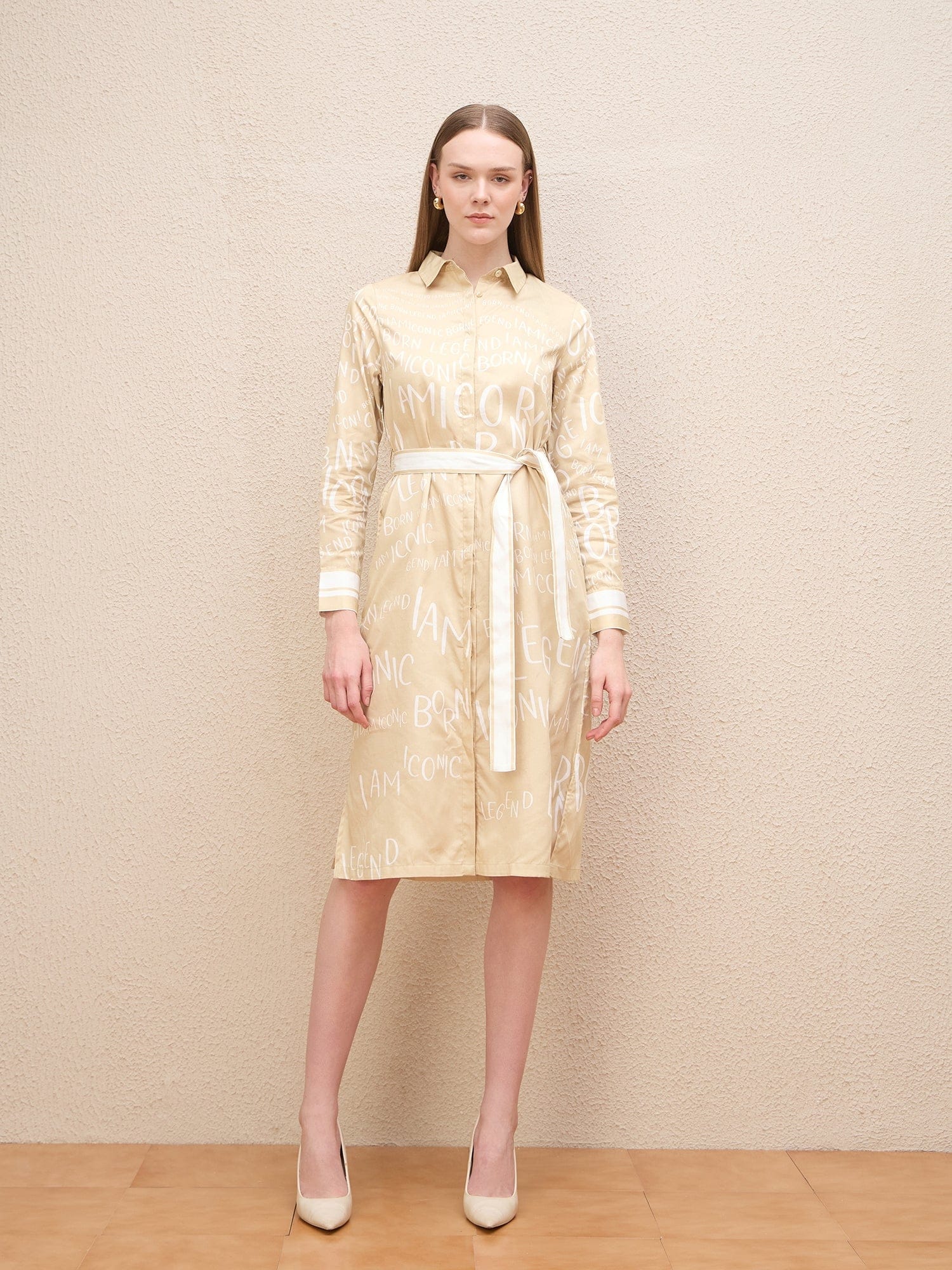 Elevate your wardrobe with our beige shirt dress, a perfect blend of style and comfort. Crafted from pure cotton fabric, this dress ensures breathability and softness for all-day wear. The regular fit with an all-over printed pattern adds a touch of elegance, making it versatile for various occasions. Featuring full sleeves and a classic collared neck, it offers a sophisticated look while the button closure provides ease of wear. Whether you're heading to the office or a casual outing, this shirt dress is your go-to choice for effortless chic. Pair it with your favorite accessories to complete the look.