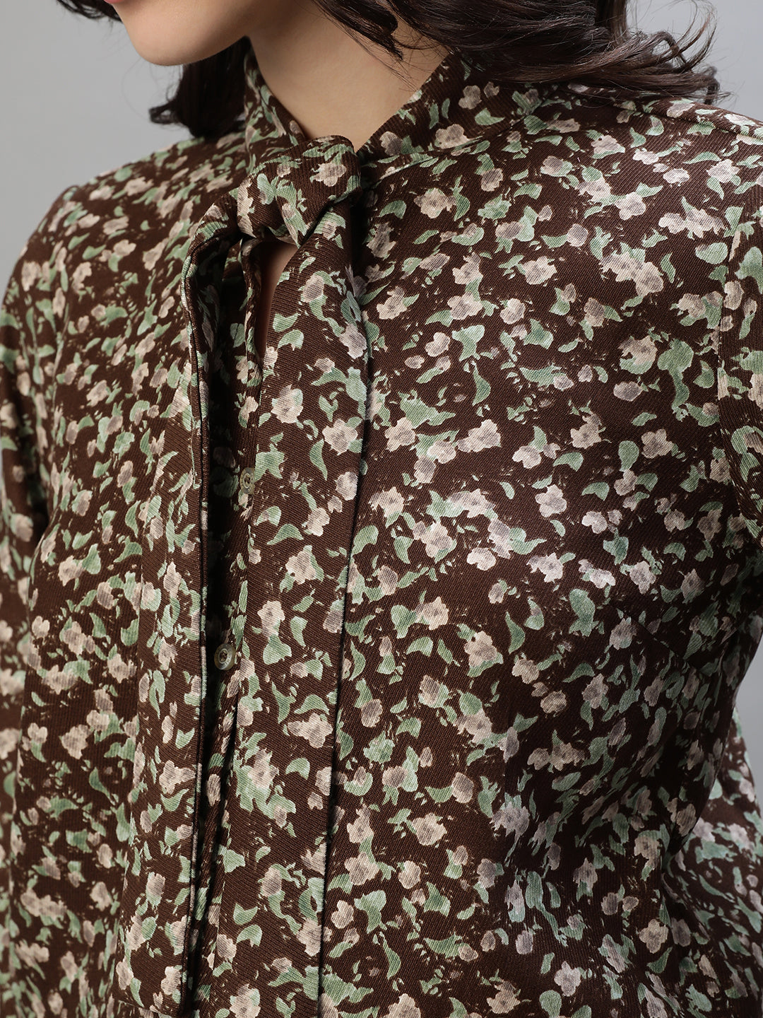 Women Multicolor Printed Tie Up Neck Full Sleeves Top