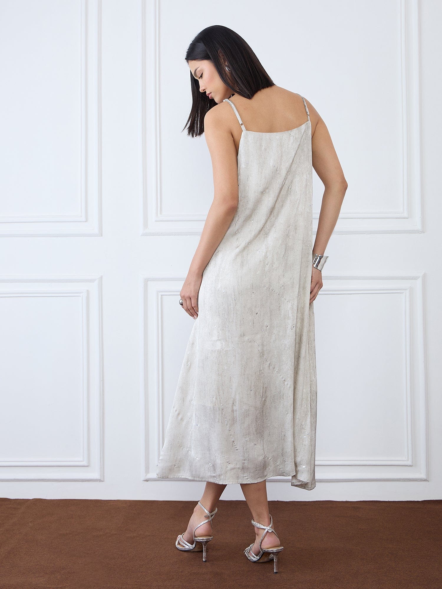 Elevate your wardrobe with this chic grey slip dress, designed for the modern woman who values both style and comfort. Featuring a regular fit and a unique splatter print pattern, this dress is perfect for any occasion. The sleeveless design and v-neckline add a touch of elegance, while the polyester fabric ensures a smooth and comfortable wear. With its convenient pull-on closure, this dress is as easy to wear as it is to style. Pair it with your favorite accessories for a look that's effortlessly sophisticated.