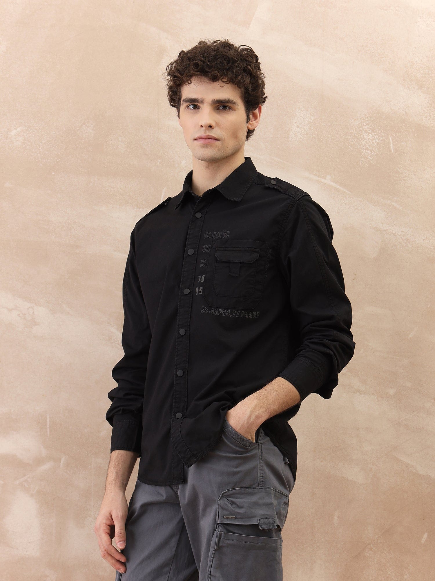 Elevate your wardrobe with this classic black shirt, featuring a regular fit and solid pattern. Crafted from a premium cotton blend, it offers comfort and style. The full sleeves and spread collar add sophistication, while the button closure ensures a polished look. Perfect for any occasion, this shirt is a versatile essential.