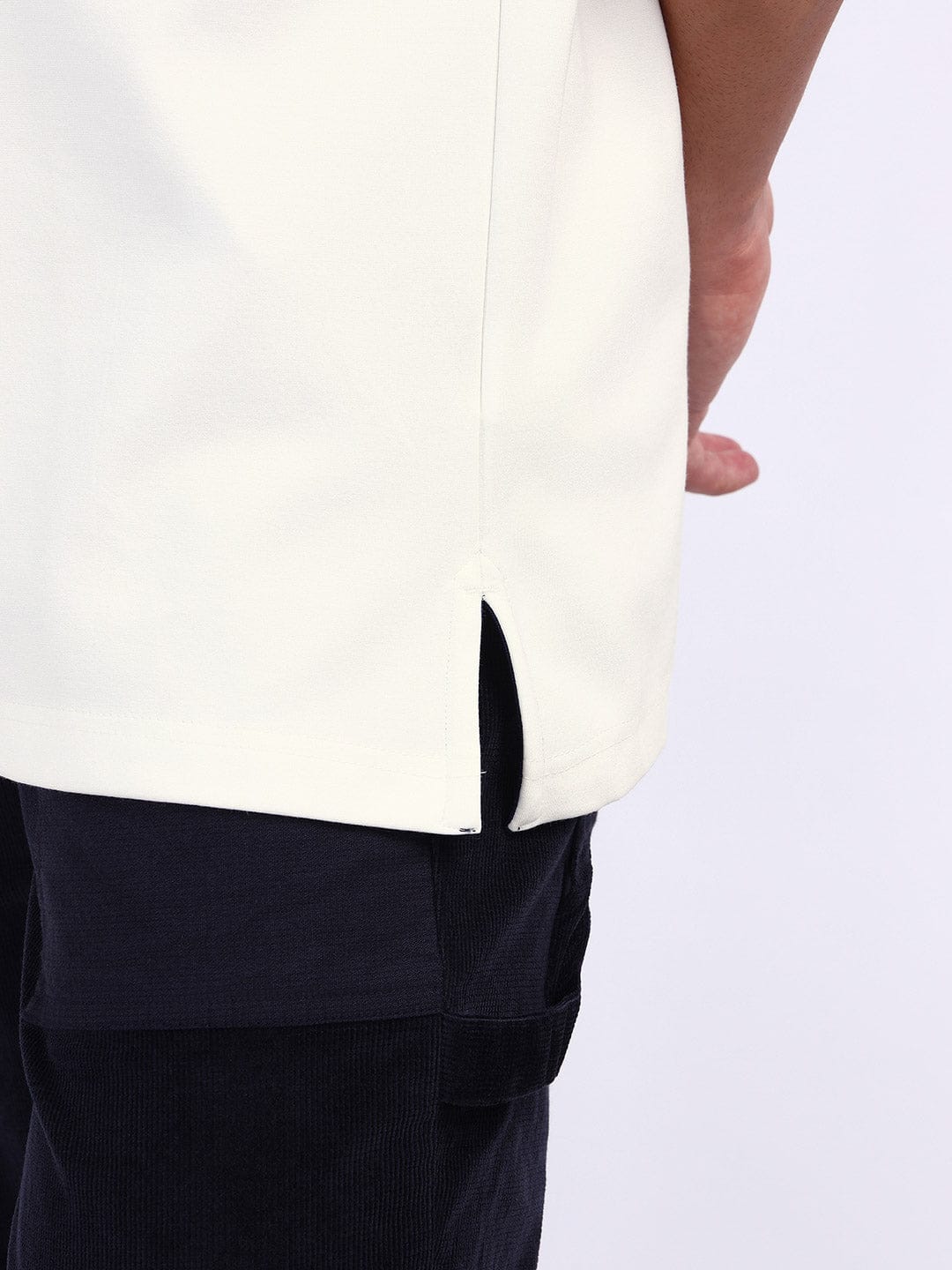 This oversized t-shirt in white is cut from a rayon nylon spandex blend fabric. The crew neck and half sleeves keep it classic while chest branding and tonal colour block details add a modern edge.