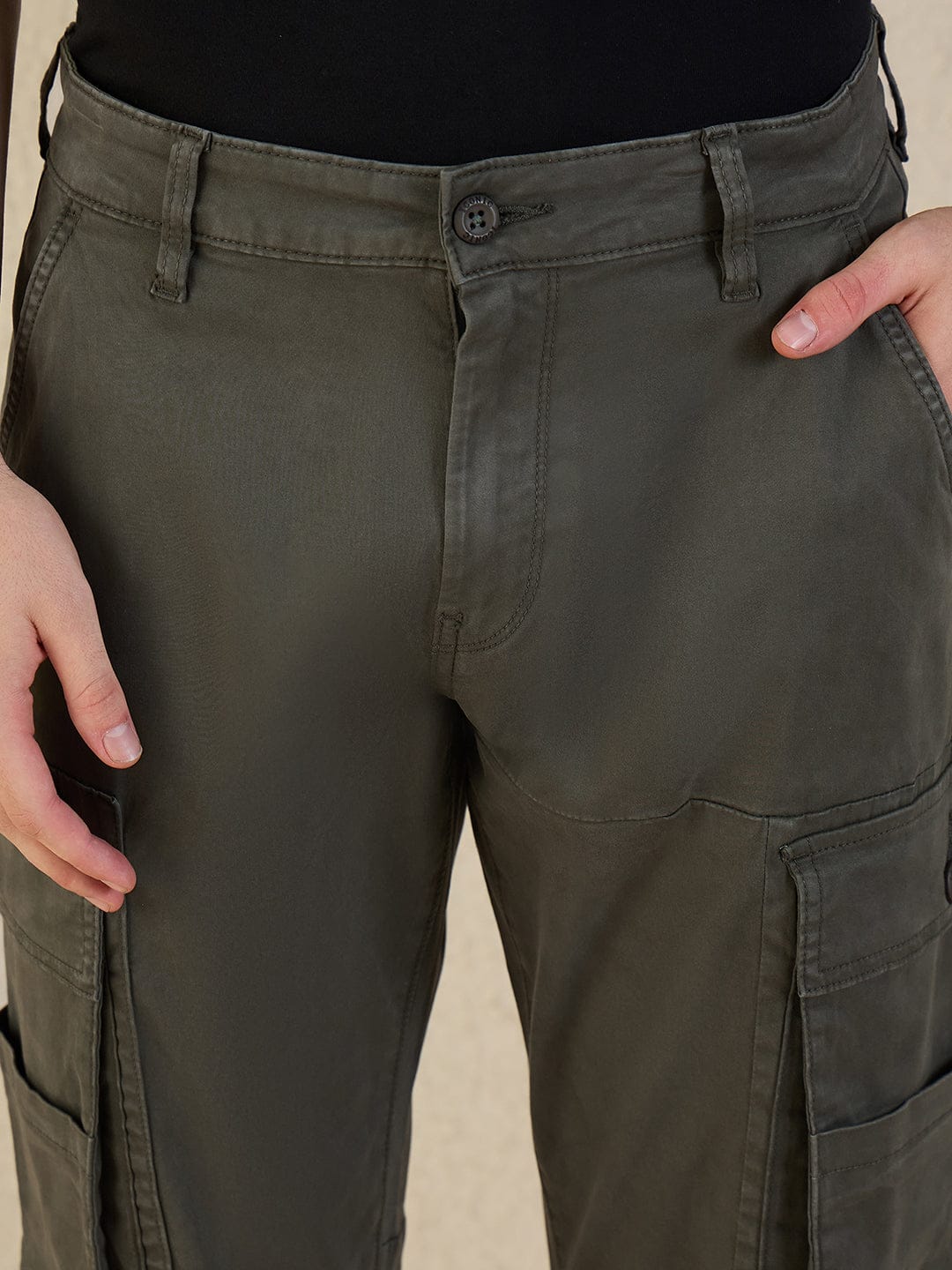 Elevate your casual style with our ICONIC Men Olive Solid Regular Fit Cargo pants. Crafted from high-quality fabric, these cargo pants offer both durability and comfort. The regular fit design ensures a flattering silhouette while the cargo pockets add a functional and stylish element. Perfect for everyday wear, these pants are versatile and easy to style. Whether you are running errands or hanging out with friends, these cargo pants will keep you looking effortlessly cool and on-trend. Upgrade your wardrobe with these timeless classics.