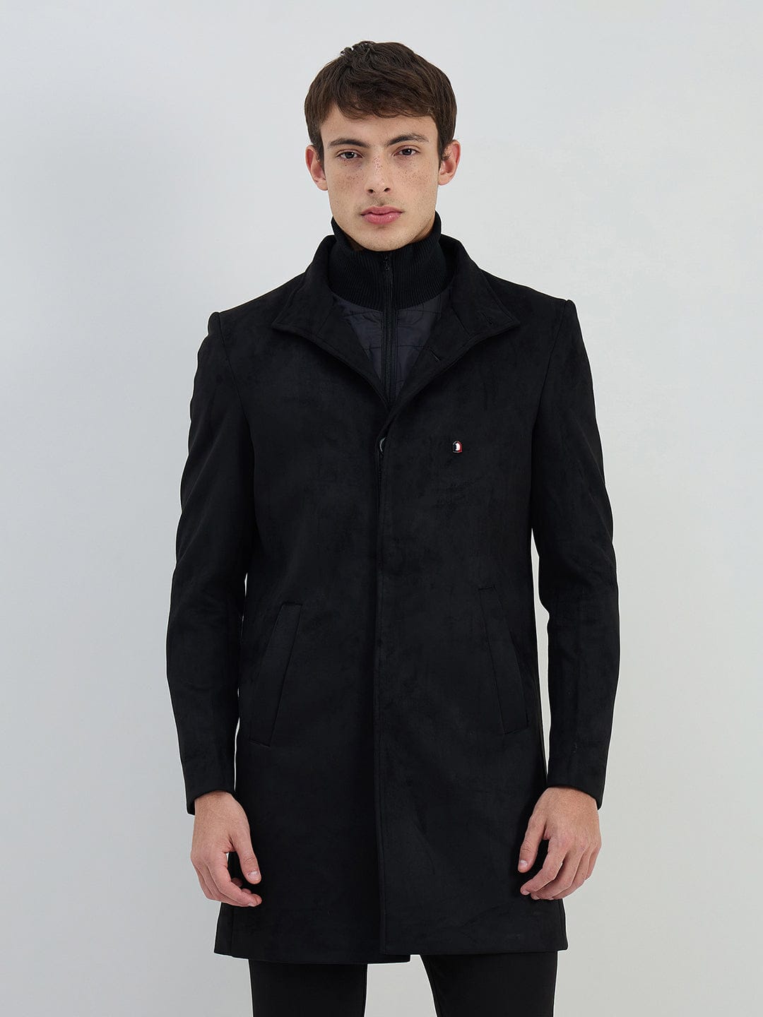 Elevate your style with our ICONIC Men Black Solid Lapel Collar Regular Fit Overcoat. Crafted with precision and attention to detail, this overcoat exudes sophistication and elegance. The regular fit ensures a comfortable and flattering silhouette, while the lapel collar adds a touch of timeless charm. Perfect for any occasion, this overcoat is versatile and fashion-forward, making it a must-have addition to any wardrobe. Stay warm and stylish this season with this iconic piece.