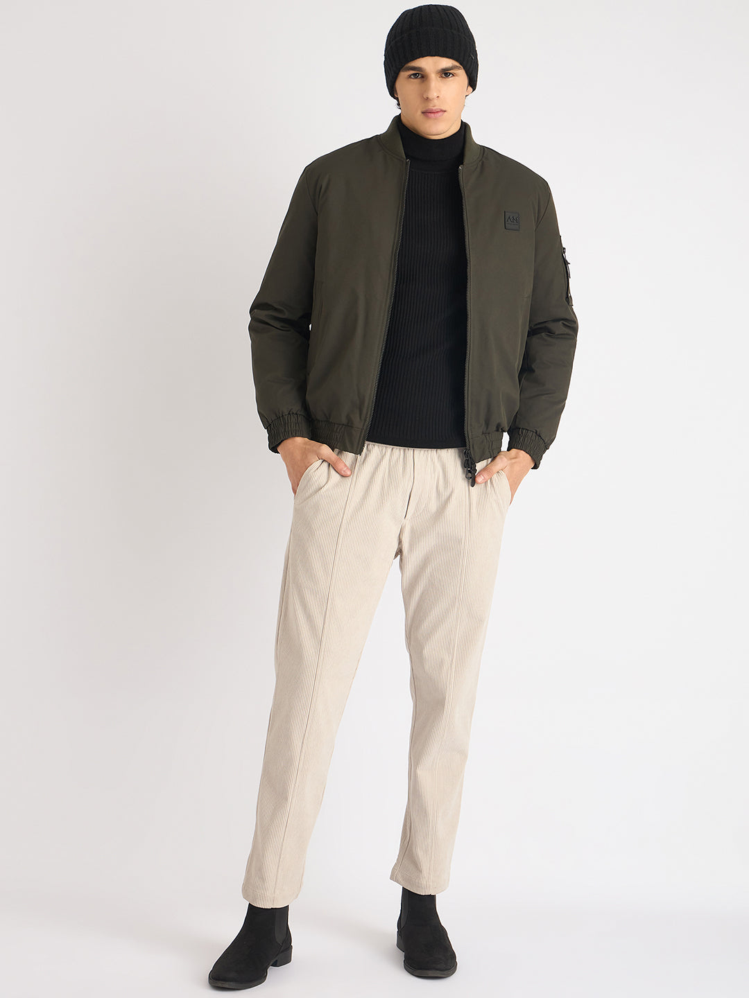 A classic bomber jacket in a fresh green hue, crafted from durable polyester. The stand collar and full sleeves offer a timeless silhouette, while the zipper closure ensures a secure fit. Perfect for layering and adding a touch of military-inspired style to any outfit.