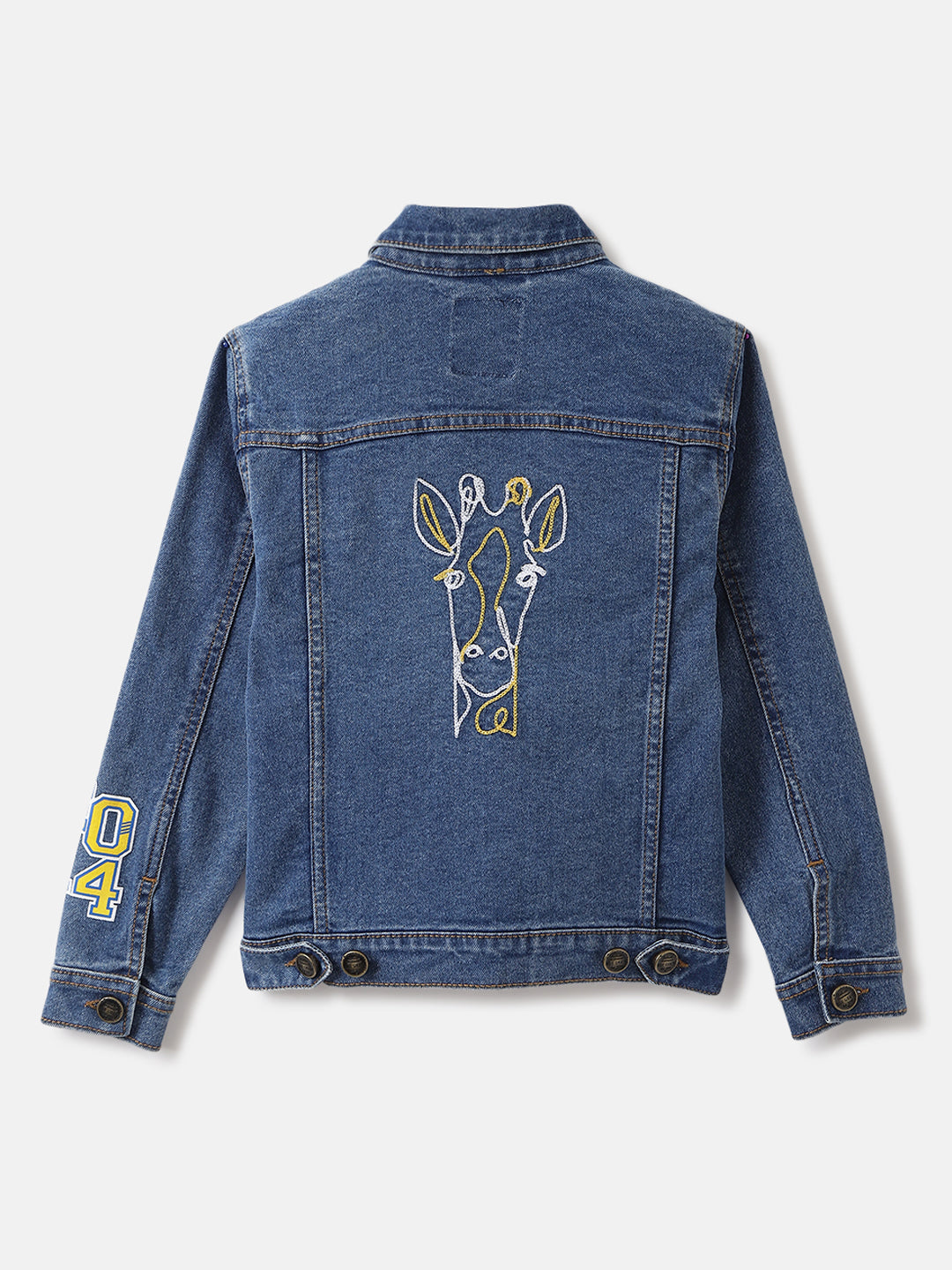Blue Giraffe Boys Blue Washed Spread Collar Full Sleeves Denim Jacket