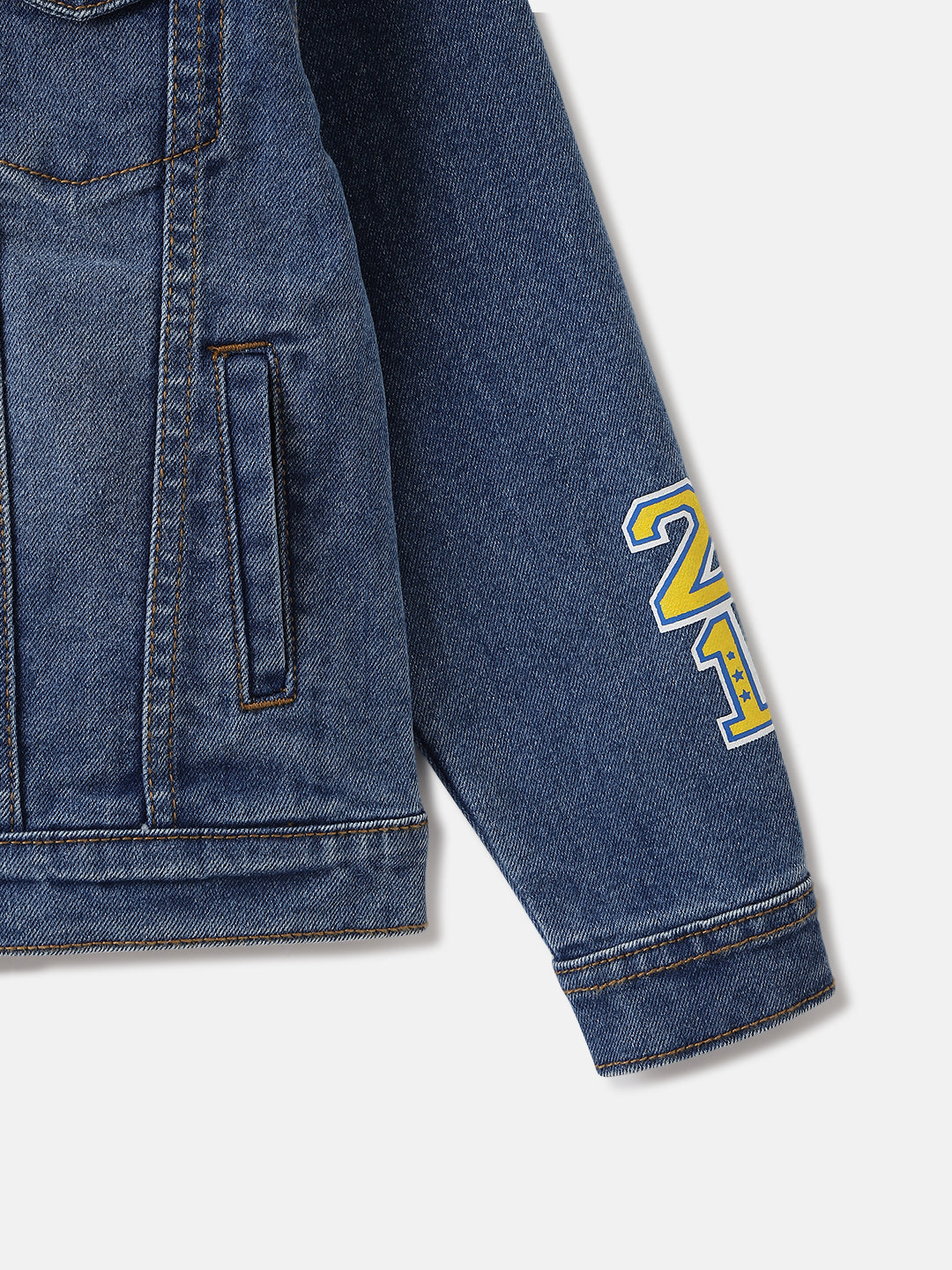 Cool and comfortable, this classic blue denim jacket is perfect for boys. Featuring a regular fit, washed pattern, full sleeves, spread collar, and button closure. Made from a durable blend of 83% cotton, 16% polyester, and 1% elastane.