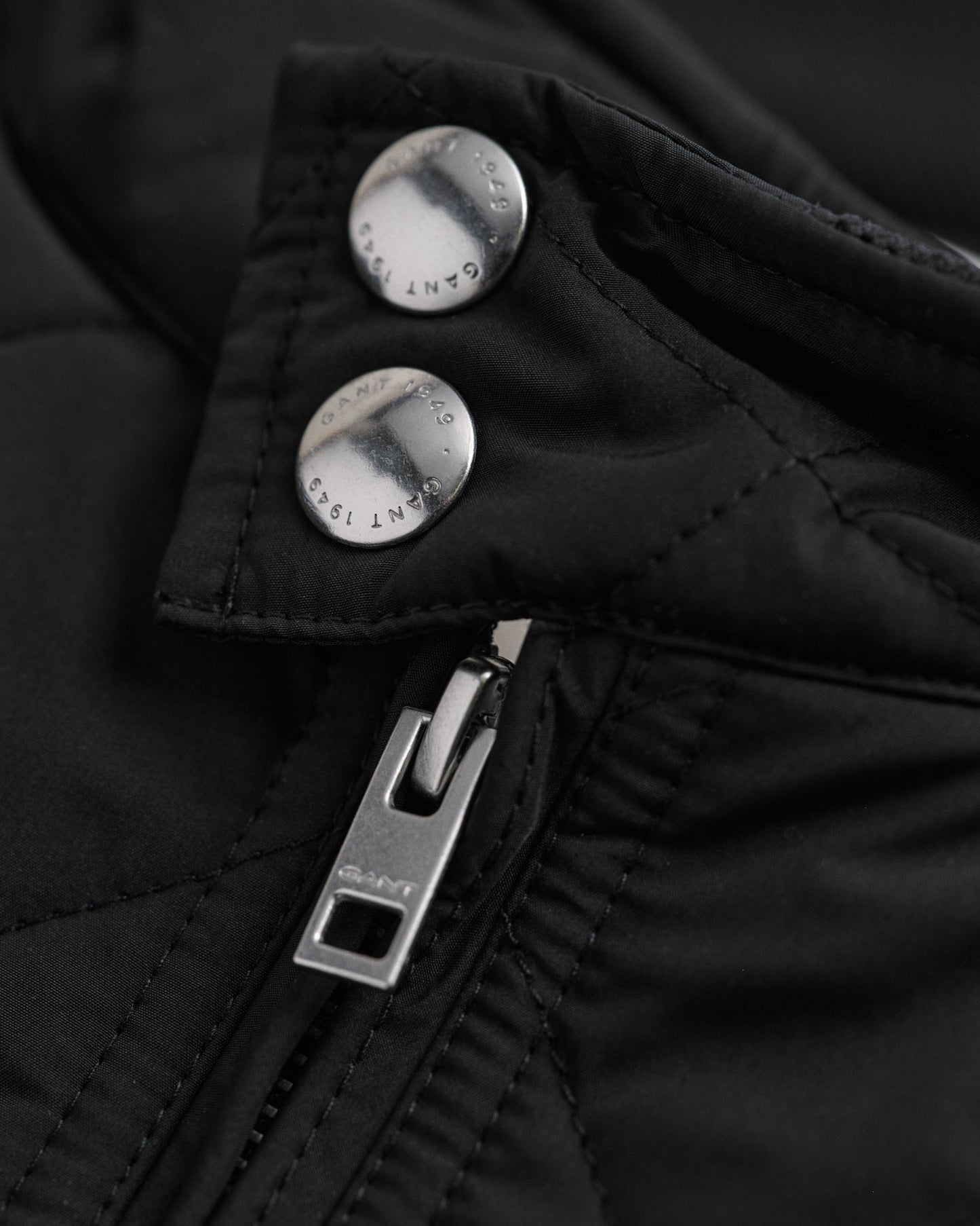 • Gant Men Black Solid Stand Collar Full Sleeves Quilted Jacket