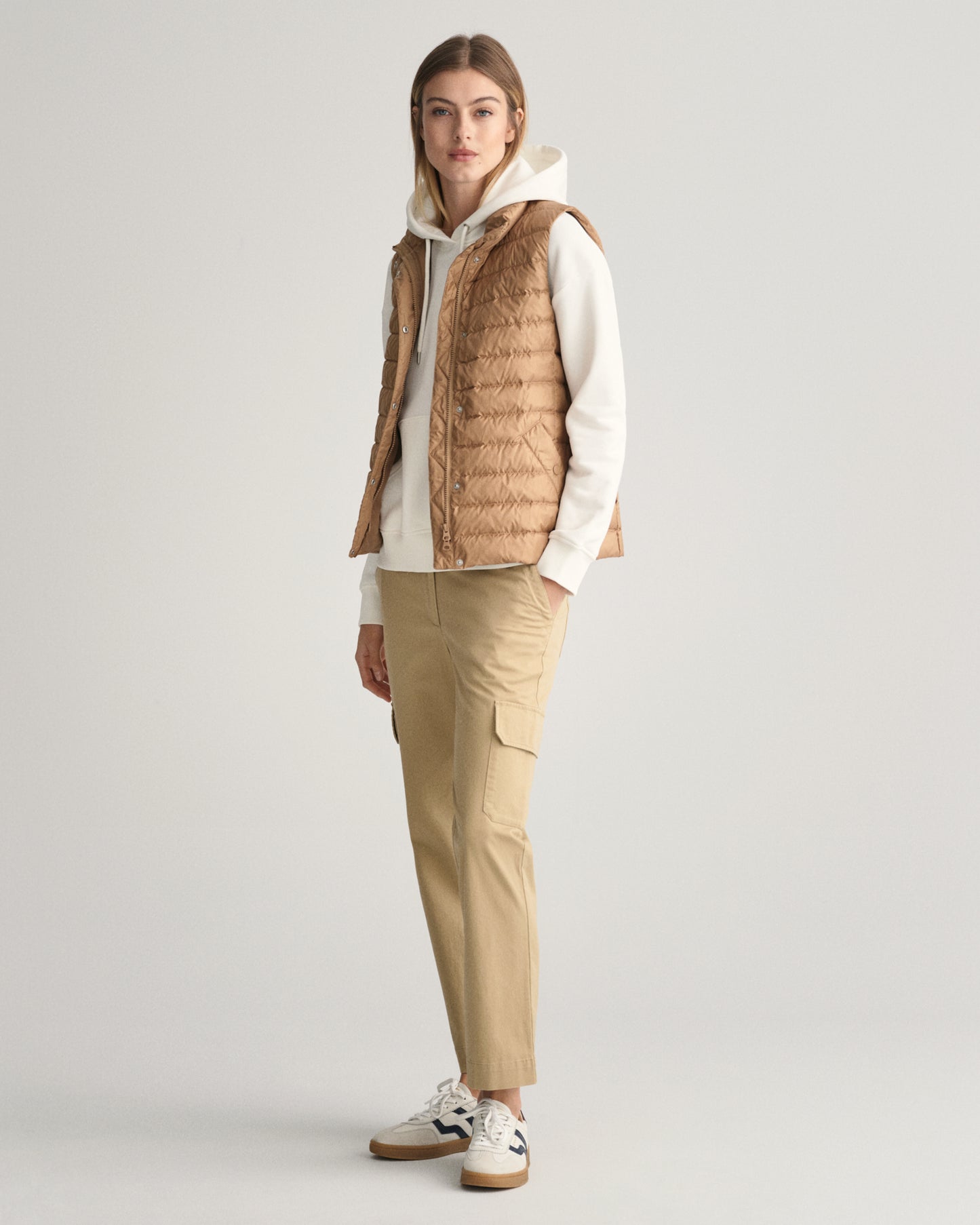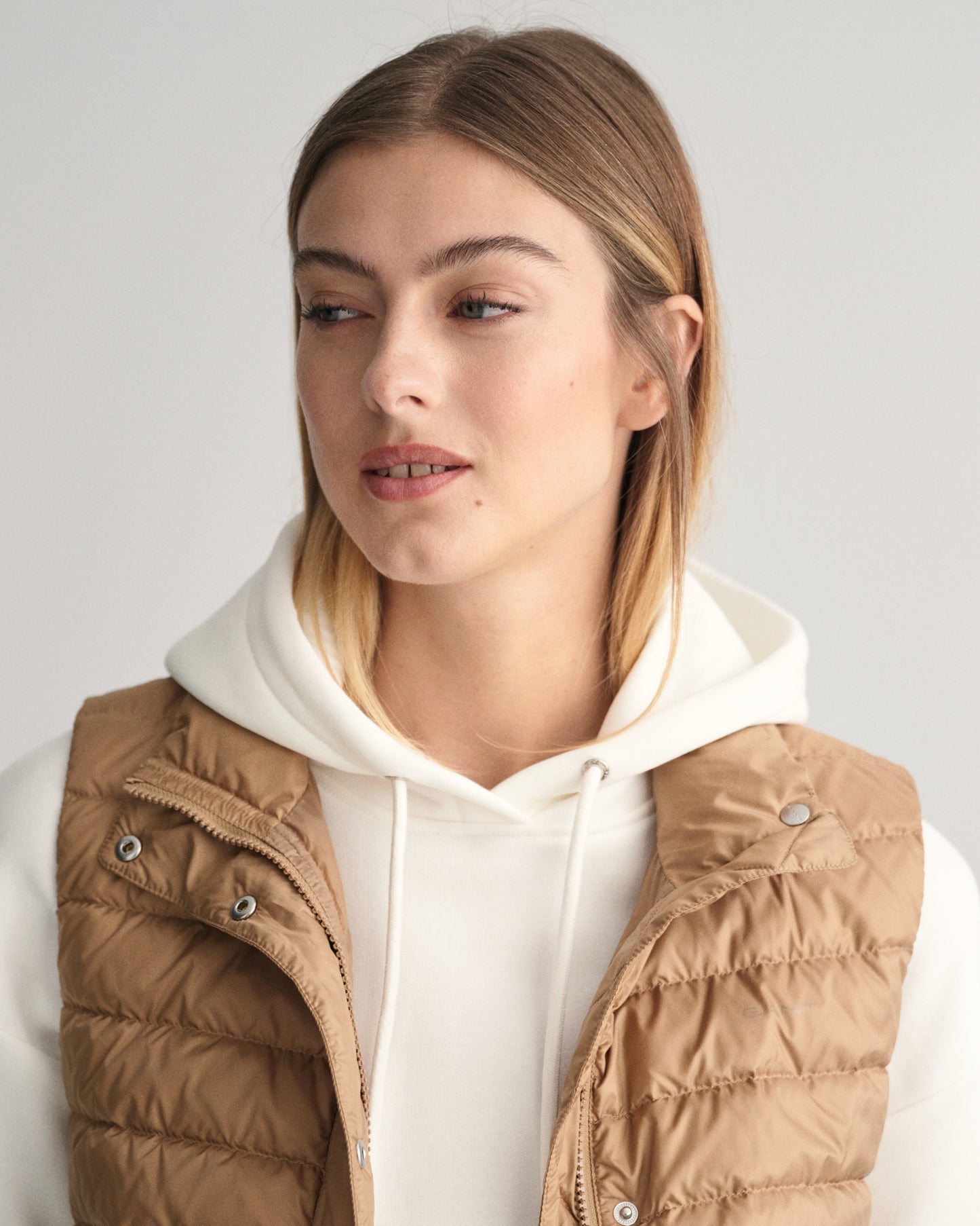 Gant Women Beige Solid Stand Collar Sleeveless Puffer Jacket