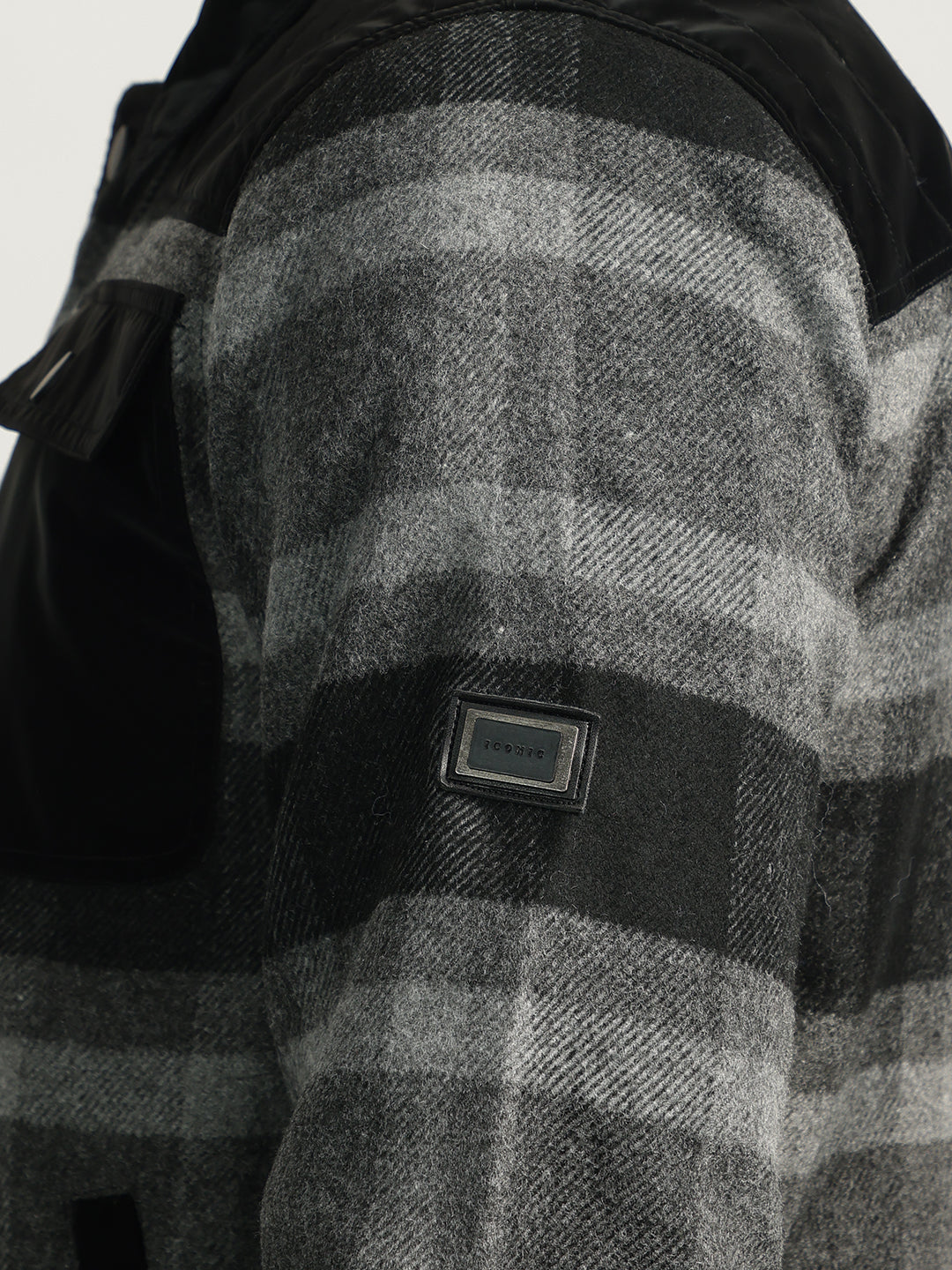 Men Black Checked Spread Collar Full Sleeves Jacket