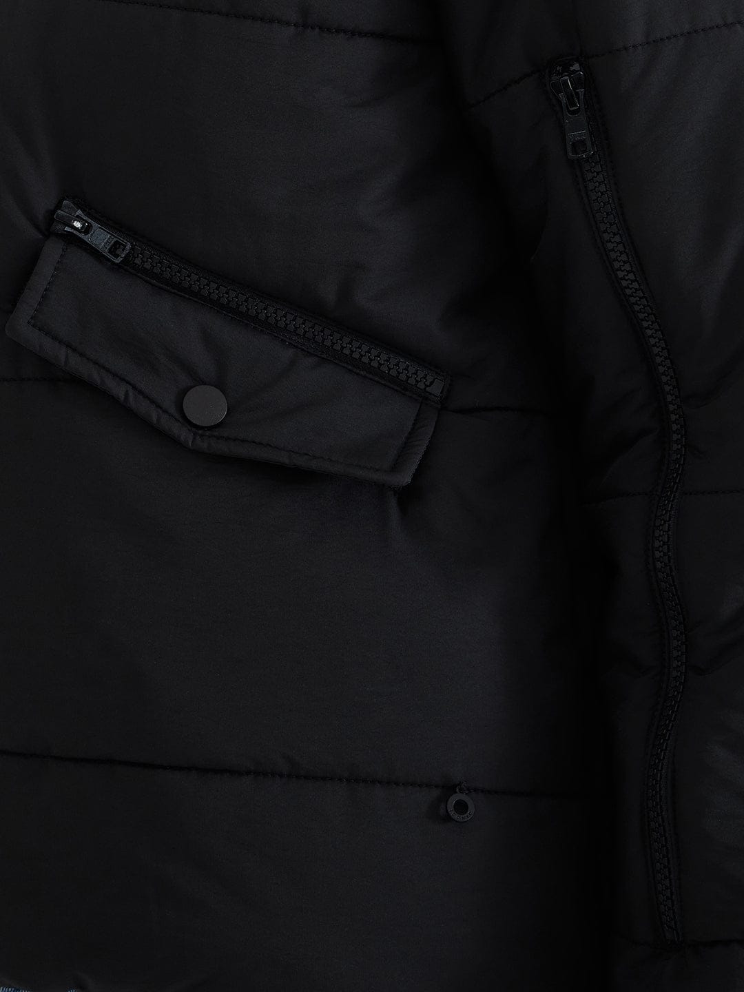 Elevate your style with our ICONIC Women Black Polyester Solid High Neck Jacket. This versatile piece combines fashion and function, featuring a sleek high neck design and premium polyester material for ultimate comfort and durability. Perfect for day or night, this jacket effortlessly transitions from casual to chic, adding a touch of sophistication to any outfit. Stay warm and stylish with this must-have wardrobe essential that will keep you looking effortlessly on-trend all season long.
