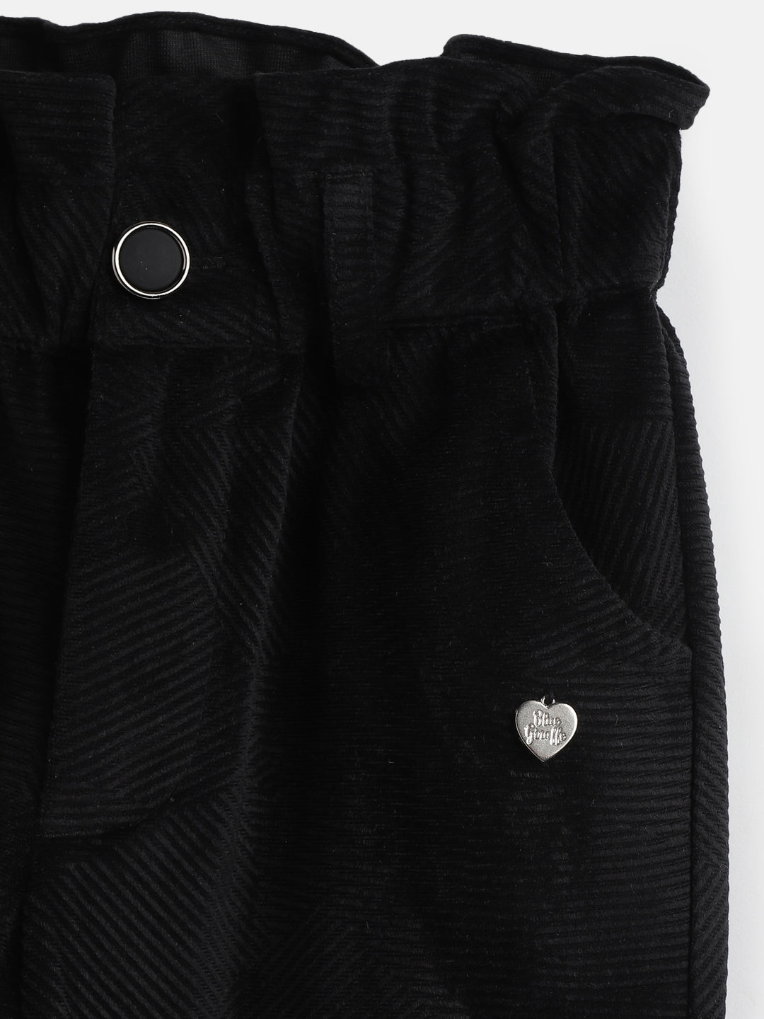 Blue Giraffe Girls Black Solid Regular Fit Flat-Front Trouser