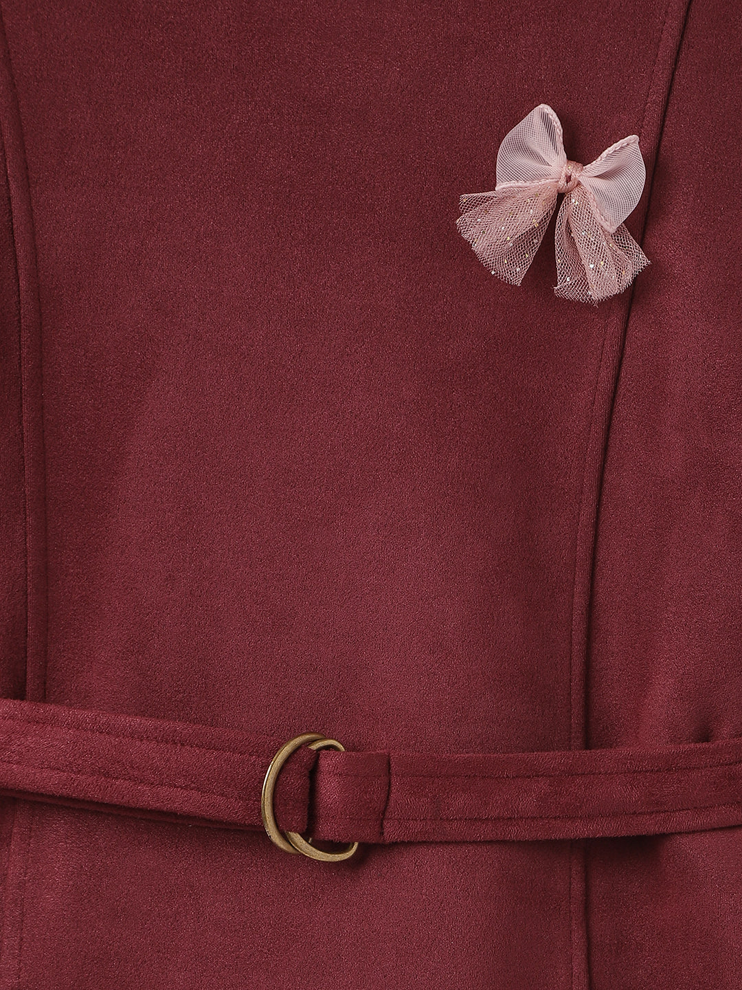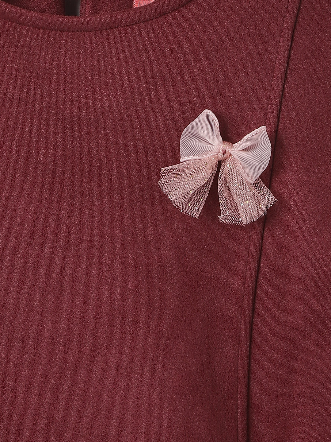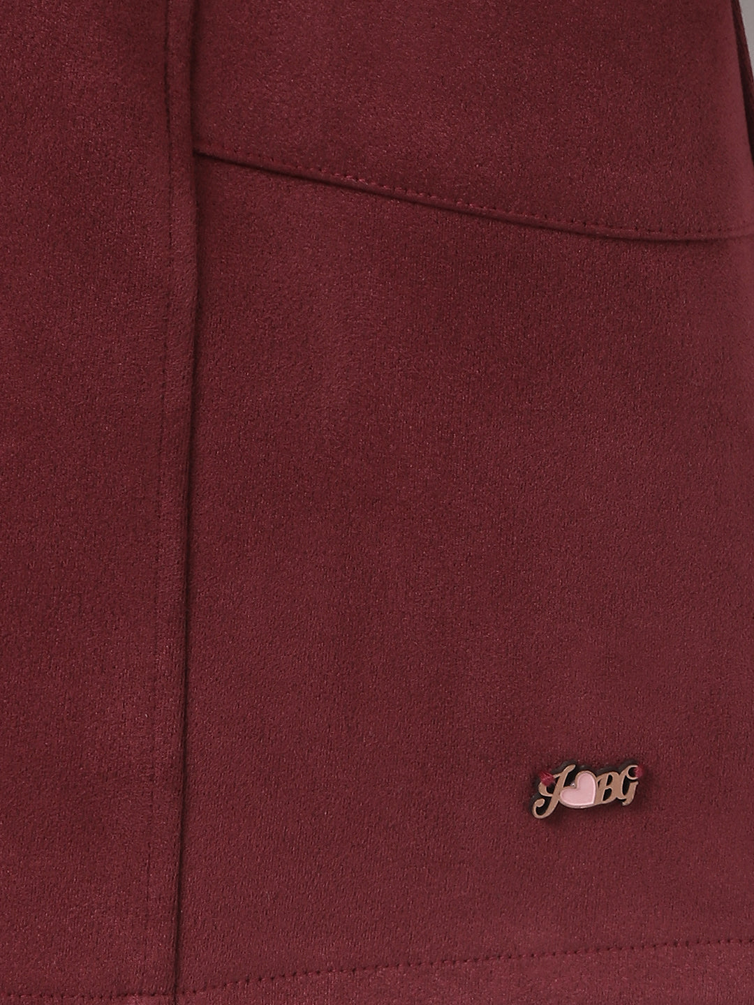 Girls Red Solid Round Neck Full Sleeves A-Line Dress