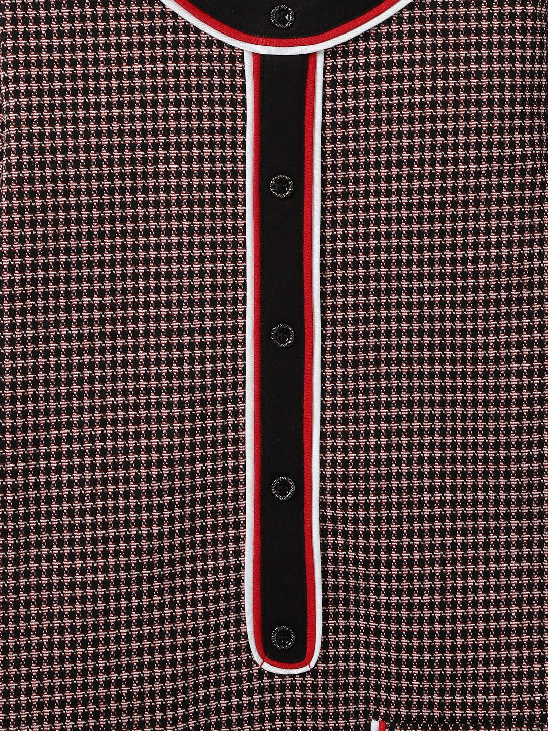 A playful and chic red checked A-line dress for girls, featuring a comfortable regular fit, 3/4 sleeves, a classic round neck, and a button closure. Crafted from a soft and breathable polyester blend fabric, this dress is perfect for any occasion.
