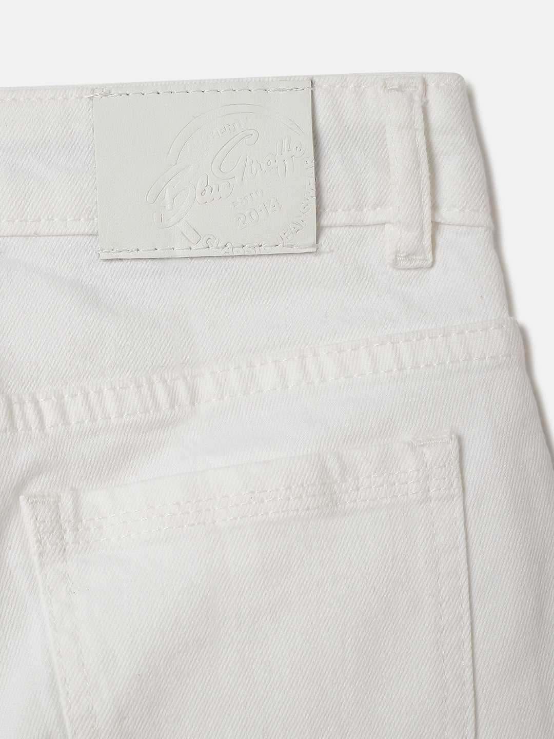 Off-white carrot fit jeans for boys. Mid-rise, button and zip closure. Crafted from soft cotton for all-day comfort. Solid pattern for a classic look.