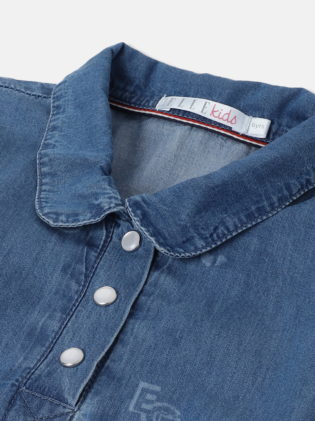 This ice blue dress for girls is a perfect blend of style and comfort. With a regular fit, it features a printed pattern that adds a playful touch. The short sleeves and shirt collar give it a smart look, while the snap button closure ensures easy wear. Crafted from soft cotton fabric, this dress promises utmost comfort all day long.
