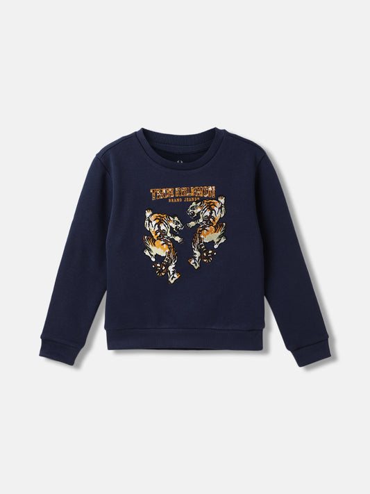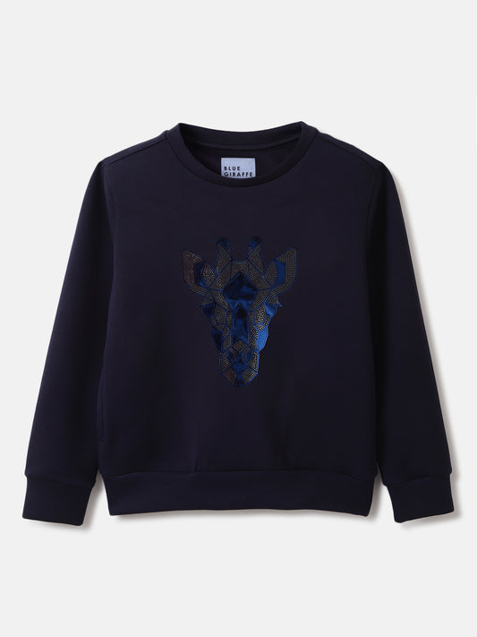 Blue Giraffe Boys Navy Blue Self Design Spread Collar Full Sleeves Pullover Style Sweater