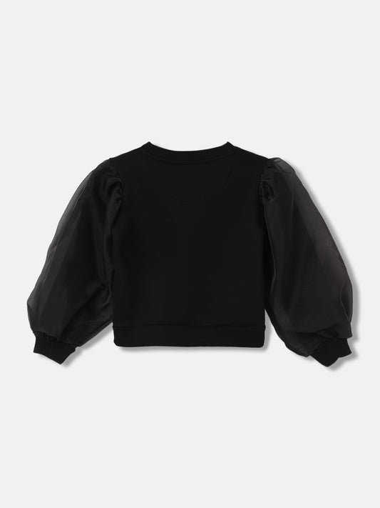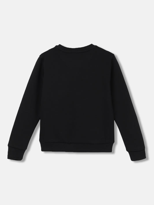 Blue Giraffe Girls Black Solid Peter Pan Collar Full Sleeves Pullover Style Sweater