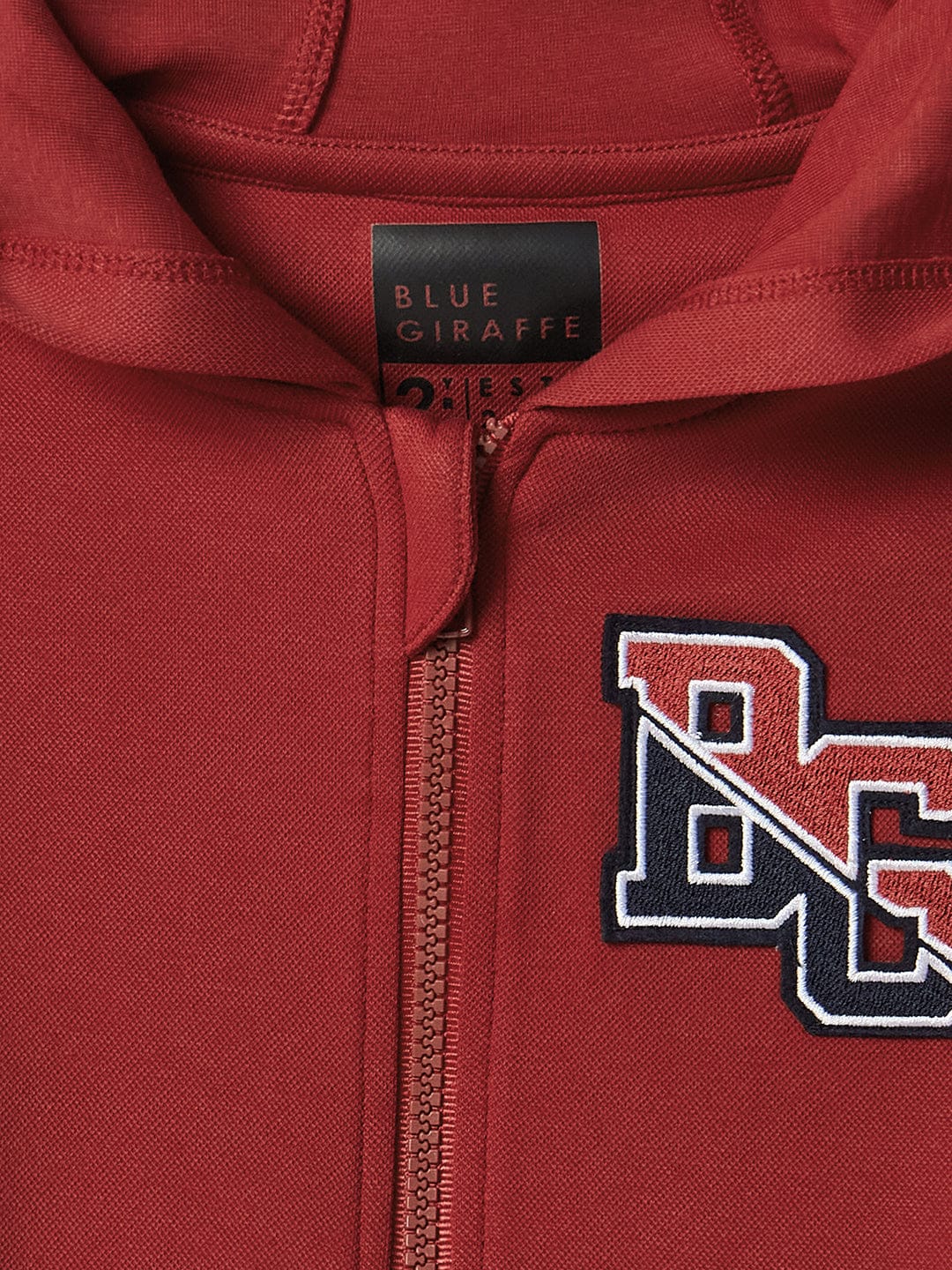Blue Giraffe Boys Red Solid Hooded Sweatshirt