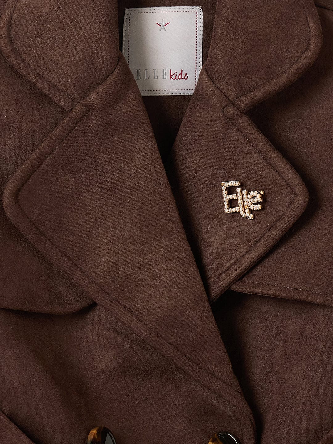 Elle Kids Brown Solid Notched Lapel Overcoat