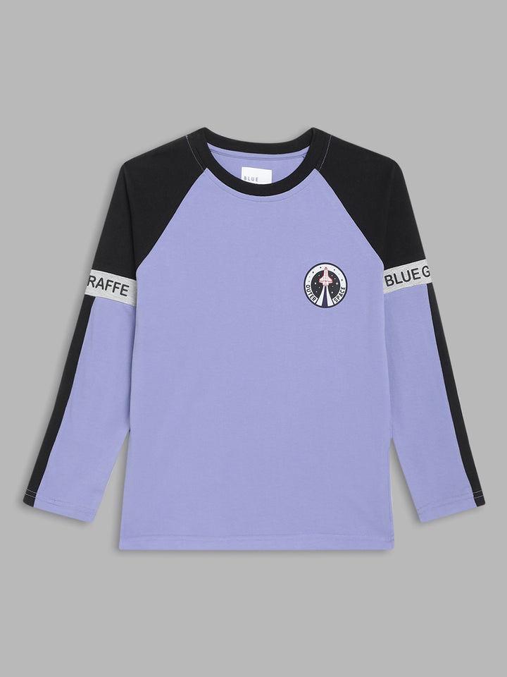 Blue Giraffe Boys Purple Colorblocked Straight Fit Mid-Rise Jogger Style Track Pants