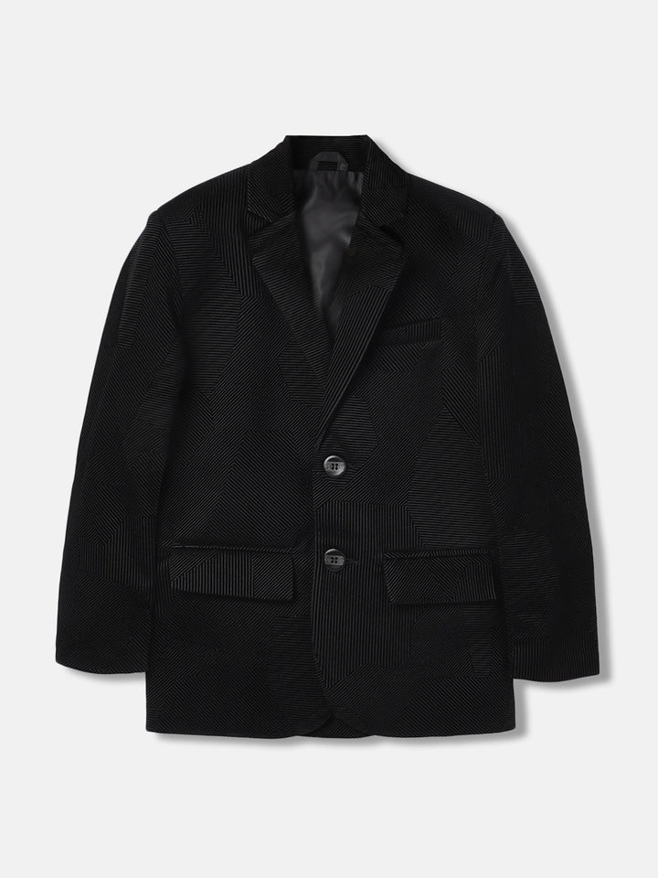 Blue Giraffe Boys Black Textured Notch Collar Full Sleeves Single Breasted Blazer