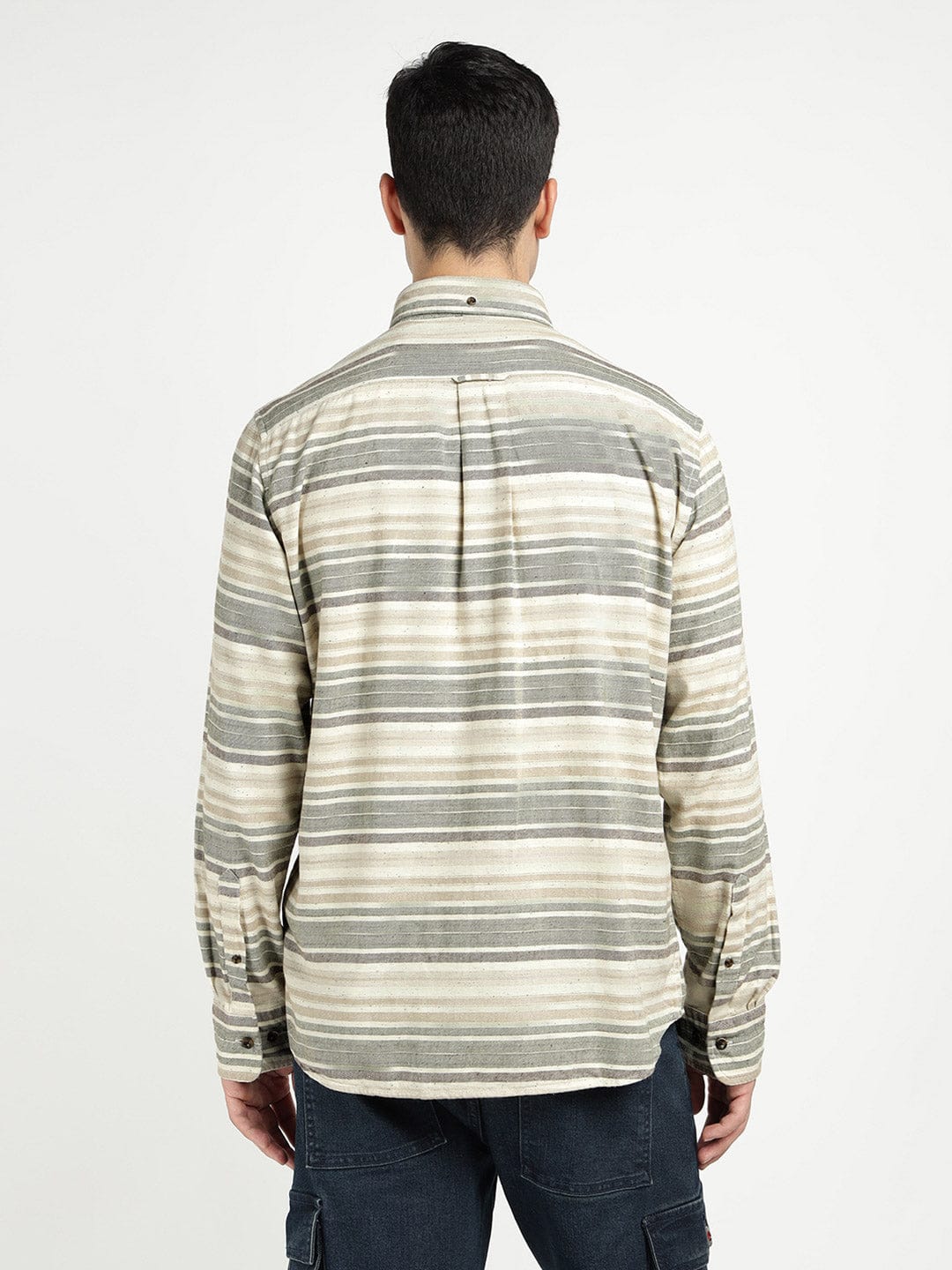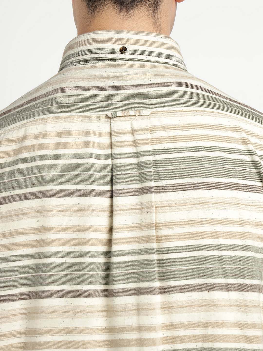 This GANT Men Green Cotton woven regular Stripes button down collar shirt crafted from premium cotton. This shirt features a timeless striped design, long sleeves, and a comfortable regular fit. The button-down collar adds a touch of sophistication, making it perfect for both casual and formal occasions. Stay effortlessly stylish with this versatile wardrobe staple that offers both comfort and classic appeal.