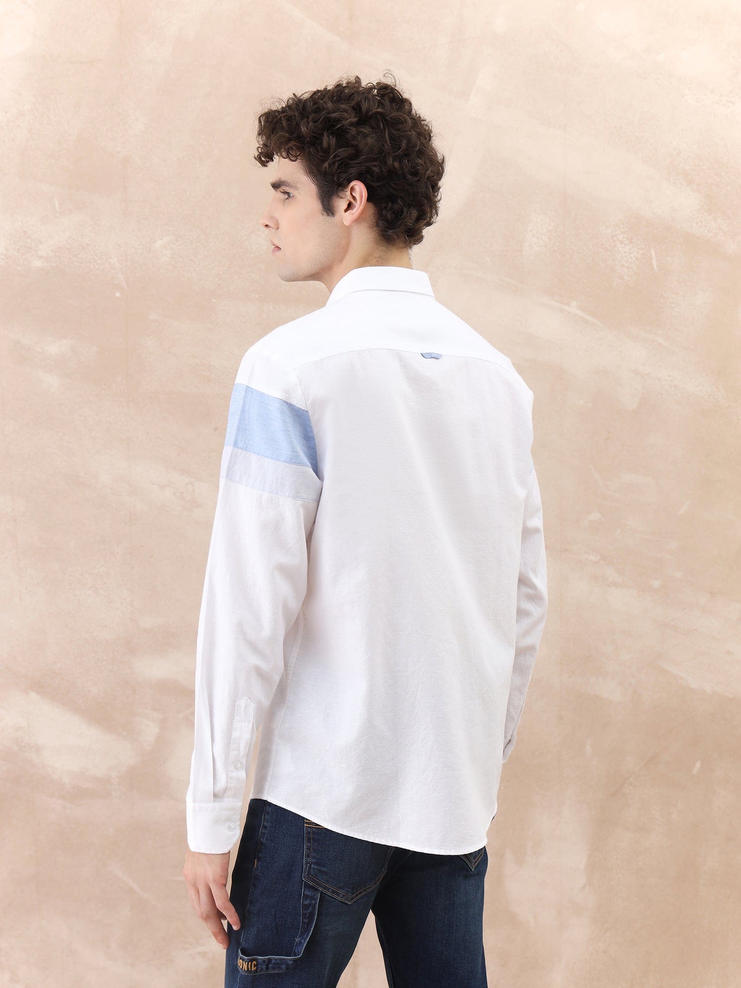 Elevate your style with this white color-block shirt, featuring a regular fit and full sleeves. Crafted from a premium cotton blend, it offers comfort and durability. The spread collar adds a touch of sophistication, while the button closure ensures a classic look. Perfect for any occasion, this shirt is a wardrobe essential.