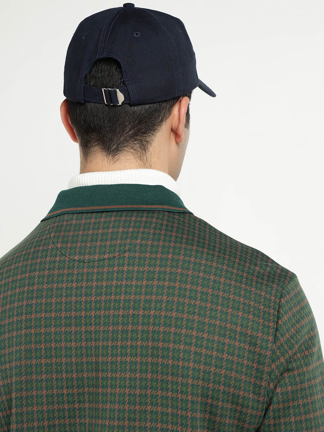 Elevate your casual style with the GANT Men Dark Green blended knitted checked polo neck T-shirt. This versatile piece features a classic polo neck and short sleeves, perfect for effortless everyday wear. The regular fit ensures a comfortable and flattering silhouette, while the dark green color and subtle check pattern add a touch of sophistication. Made from high-quality blended fabric. This pull-over polo shirt is both stylish and durable, making it a must-have addition to your wardrobe. Whether you are dressing up for a night out or keeping it casual on the weekends. This GANT polo shirt is sure to elevate your look.