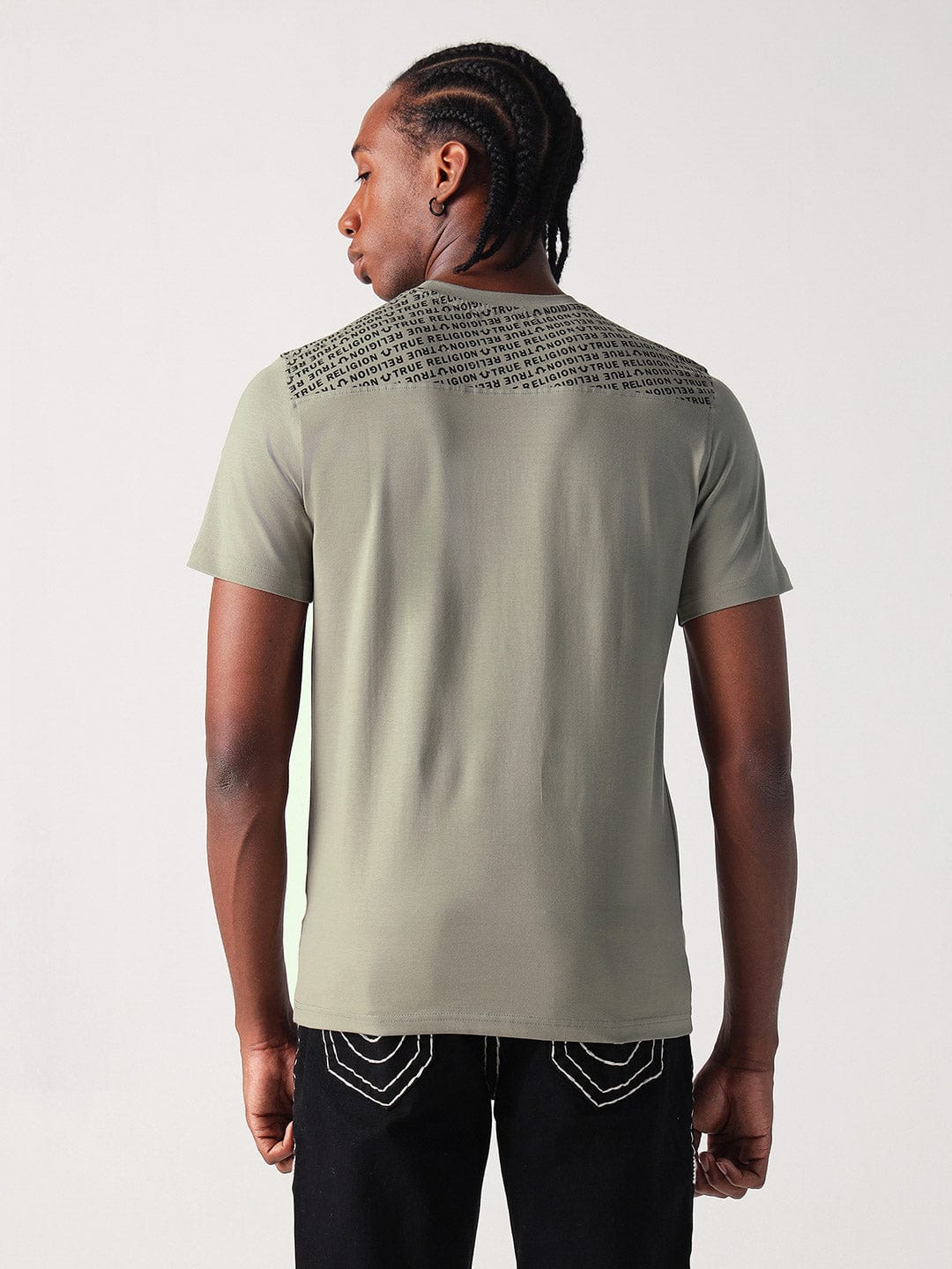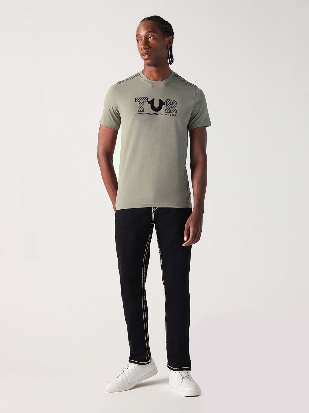 This TRUE RELIGION Men Light Green Cotton knitted logo crew neck T-shirt crafted from premium cotton. This short-sleeve pullover offers both style and comfort. The regular fit ensures a flattering silhouette, while the iconic logo adds a touch of sophistication. Perfect for everyday wear. This versatile piece effortlessly combines quality and fashion.