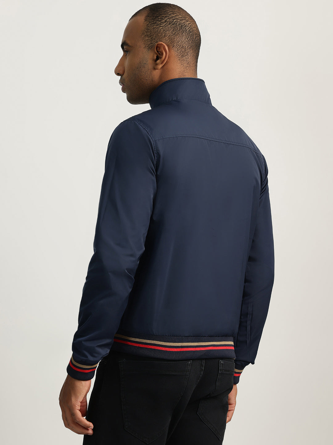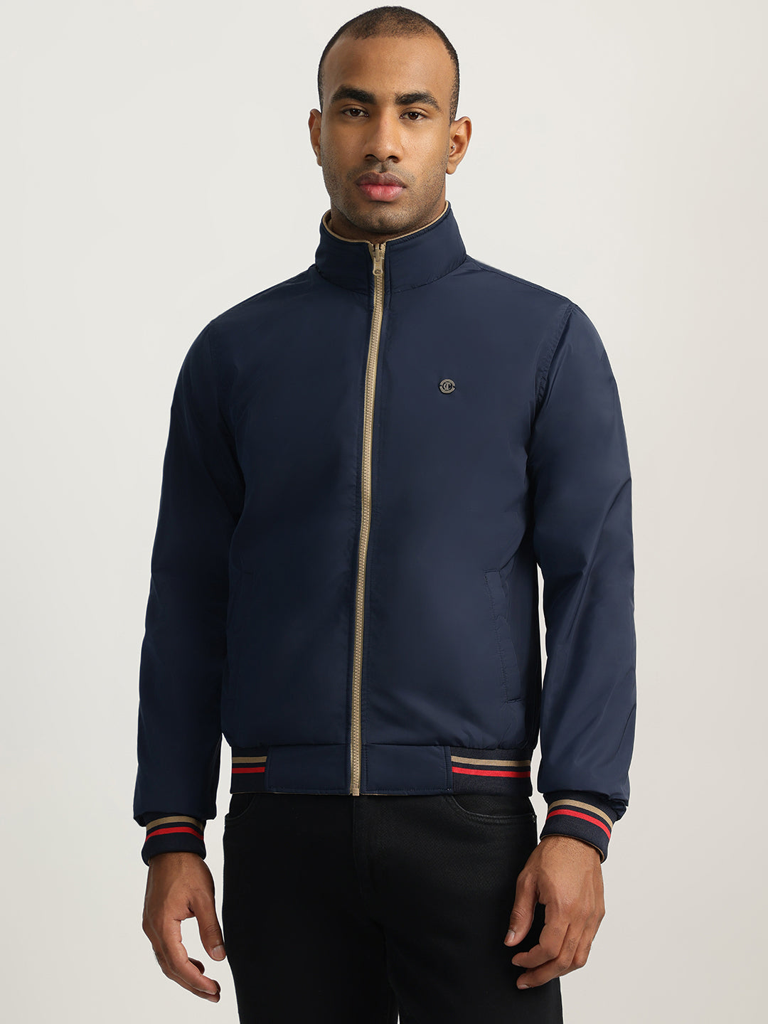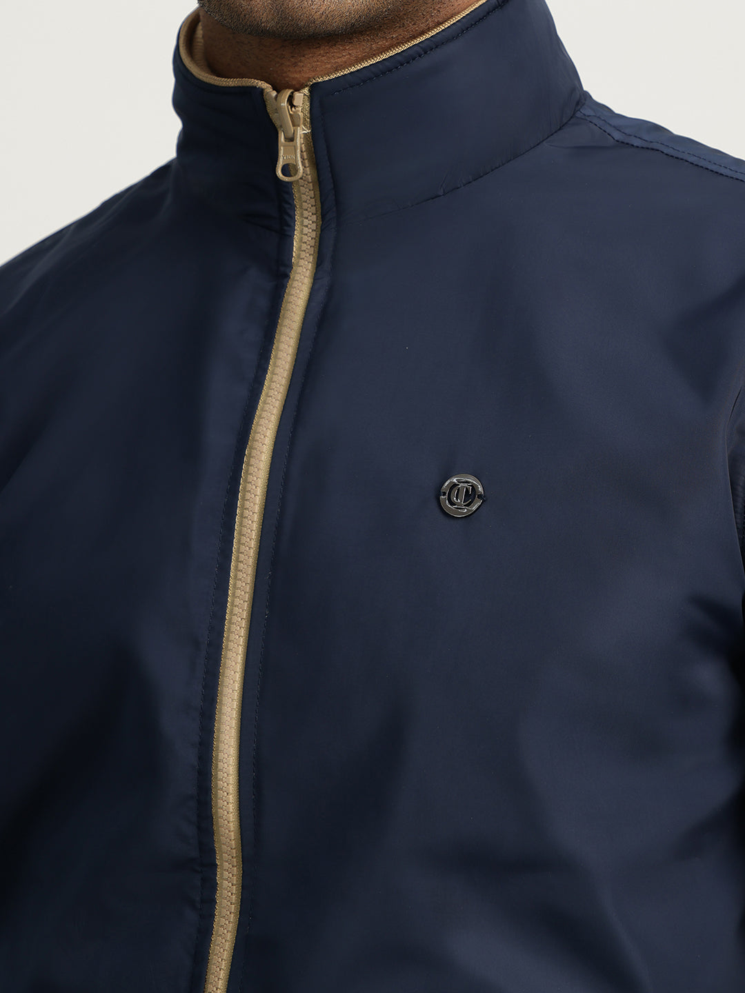 Effortlessly stylish, this beige men's reversible jacket features a stand collar, full sleeves, and a zip closure. Crafted from comfortable polyester, it offers a regular fit for a flattering silhouette.