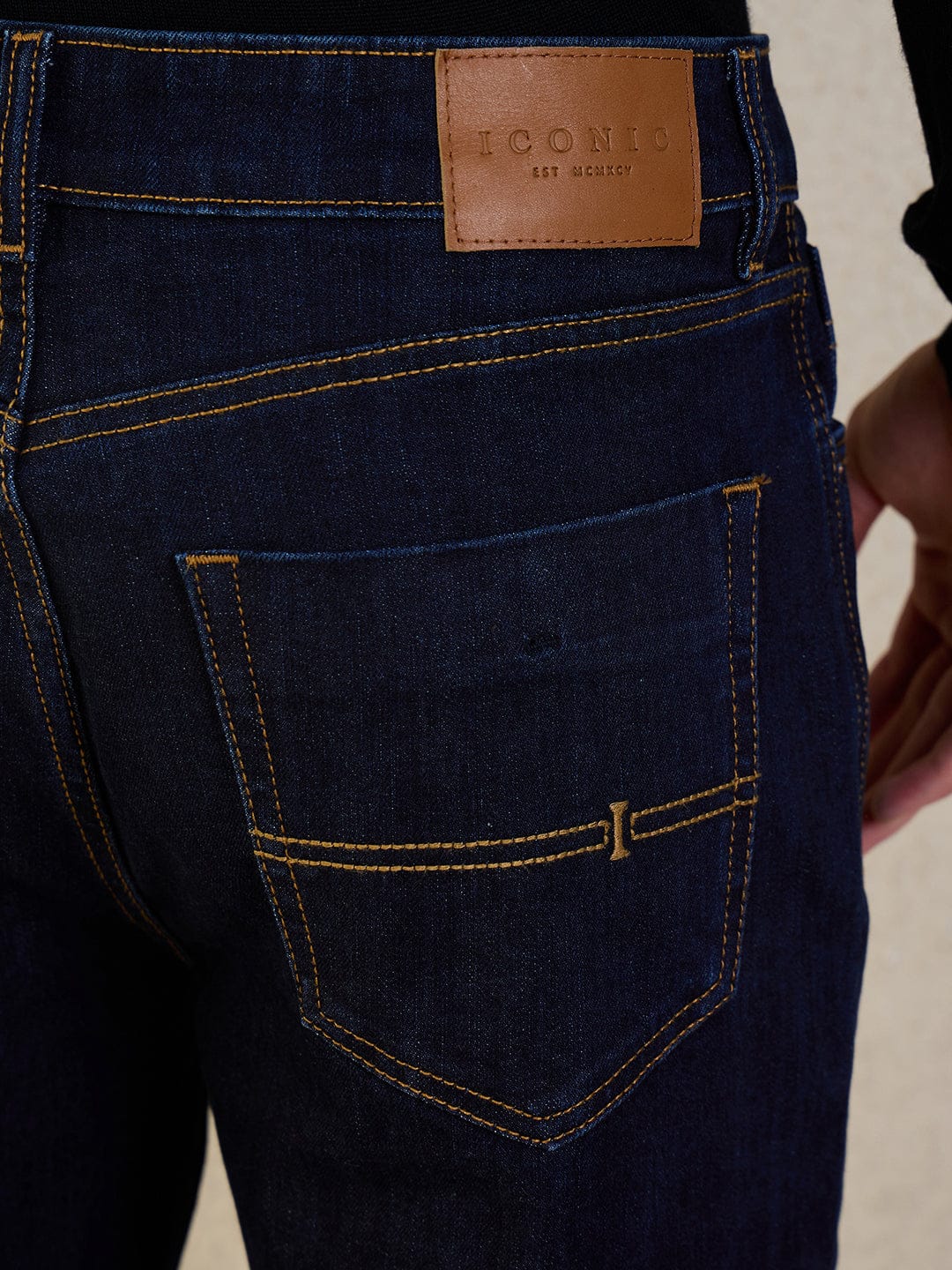 Elevate your wardrobe with our ICONIC Men Navy Blue Regular Fit Jeans. Crafted for comfort and style, these jeans offer a timeless look that transitions effortlessly from day to night. The regular fit provides a classic silhouette, while the rich navy blue hue adds a touch of sophistication to any outfit. Made with high-quality materials, these jeans are durable and designed to last. Whether you are dressing up for a night out or keeping it casual, these ICONIC jeans are a must-have staple for any modern man's closet.