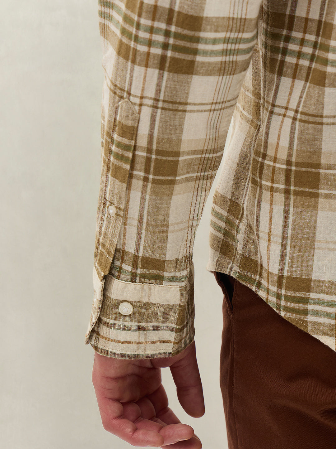 Men Checked Khaki Shirt