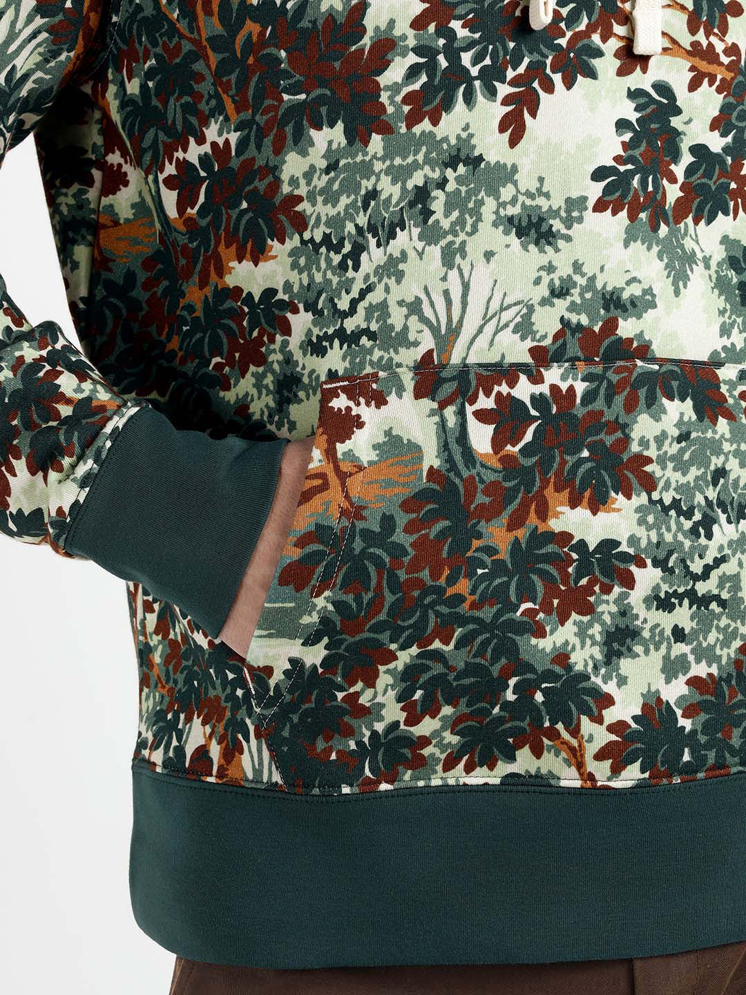 Men Beige/Green Printed Hooded Sweatshirt